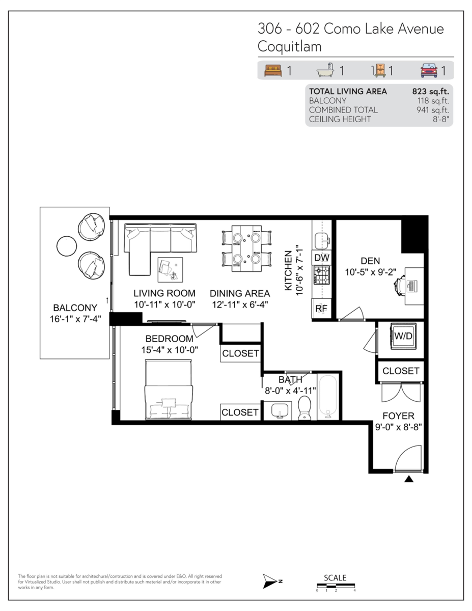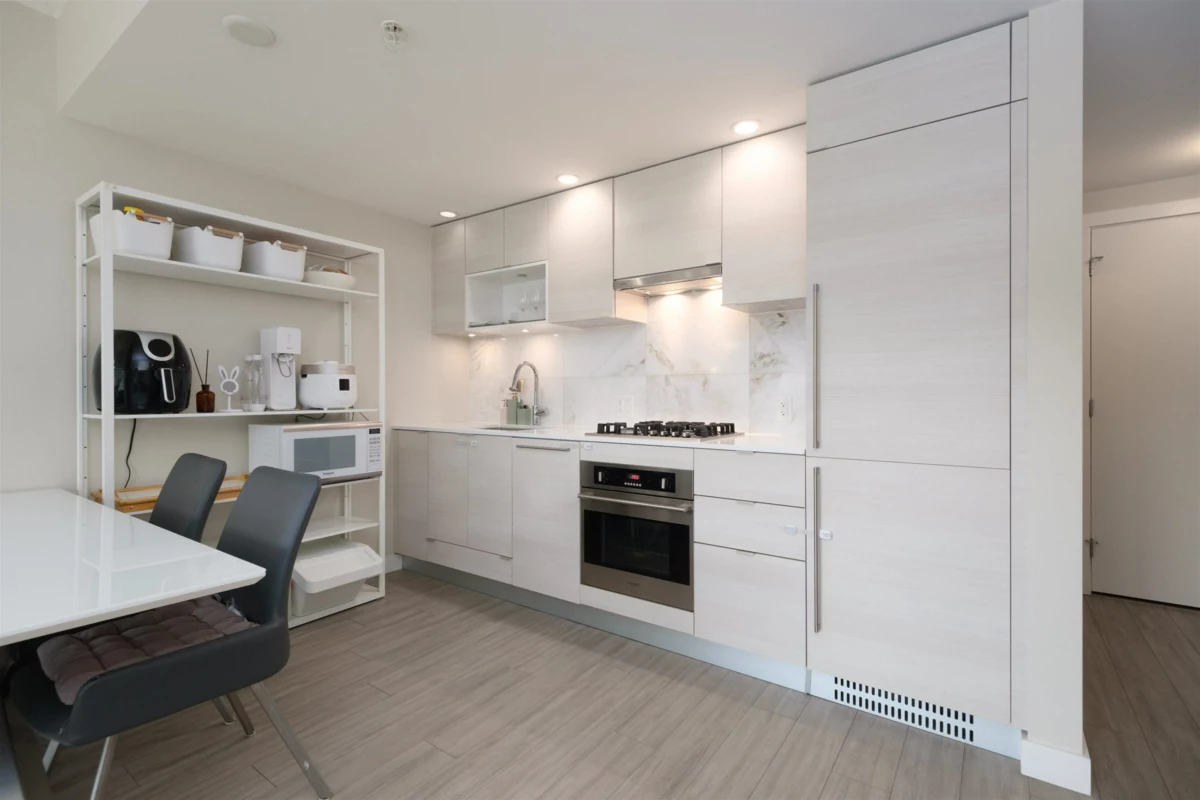 Are you looking for space? Efficient layout? This 1 Bd 1 Bath boasts a 10'5"x9'2" den which feels like a 2Bd property! No units below or beside provide privacy, peace. Uptown 1 by BOSA is conveniently located within steps to restaurants, shops, transit, schools, and quick access to HW1. Floor-to-ceiling windows allow for plenty of natural light, and a large patio overlooking a courtyard facing a quiet street provides a private, covered outdoor space. The kitchen is equipped with high-end SS European-style appliances and a gas stove for the chefs! The building offers a wide range of amenities, including a gym, yoga studio, dry and steam sauna, lounge, and courtyard. BC ASSESSMENT at $693K - To live in or invest, don't miss this opportunity to own!