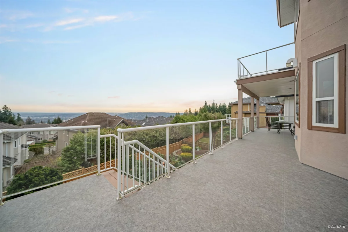 Stunning south-facing Westwood Plateau home with breathtaking views, meticulously maintained by the sam owner for over 20 years, featuring a 3-story walkout design with 4 ensuite bedrooms upstairs, including master suite with a private balcony and gorgeous views; a bright main floor with high ceilings, separat living and family rooms, a well-connected kitchen and dining area, plus a den with a full bathroo perfect for an office or guest room; and a walkout basement with a 2-bedroom layout and backyard access easily convertible to a rental suite, all enhanced by central air conditioning and a built-in sprinkle system for effortless maintenance.This home offers the perfect combination of comfort, functionality, an stunning views—don’t miss out on this rare opportunity