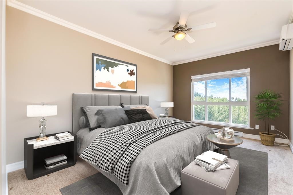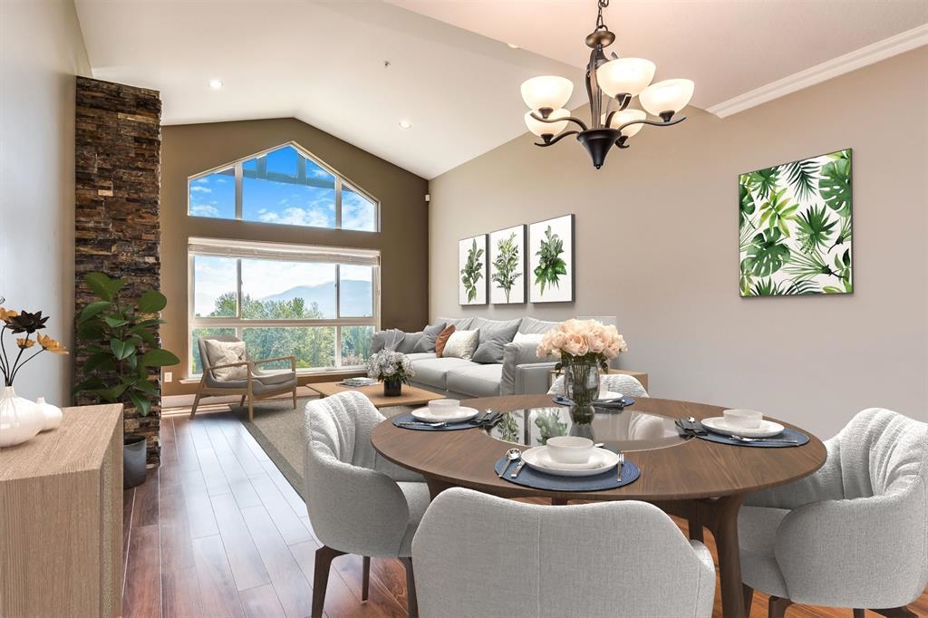 PRICE REDUCED !! Welcome to executive luxury living in this gated penthouse suite - The Mews- in the heart of Mission! Featuring vaulted ceilings and picture frame windows, this home is filled with natural light and offers a bright, spacious layout with ceiling stone fireplace. Gourmet kitchen boasts granite countertops, s/s appliances, and elegant dark maple cabinetry. King size primary bdrm includes a walk-in closet and spa like ensuite. A generous second 2nd bdrm, 2 parking, storage, and access to an exercise room & games lounge. VIEW! Enjoy unobstructed breathtaking views of Mt. Baker, Fraser River, Heritage Park, Matsqui flats, Grotto - over 15 acres of pristine landscape with hiking biking trails. Immaculately maintained and truly one of a kind! OPEN SAT NOV 29, 11:30 am -12:30 pm