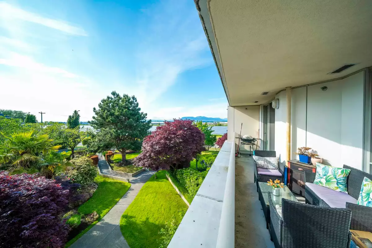Welcome to LIGHTHOUSE PLACE. Come step into a unit filled with modern elegance meets natural light. Short walk away from the Richmond Water front dyke trail along the river. Situated in a quiet & highly sought after family oriented neighborhood. Across from a park. Spacious 3 Bed, 2 Baths. Enjoy the WATER VIEW from the living room. Huge patio facing a serene setting for your private enjoyment. 2 parking. 1 Storage. Amenities: Gym, meeting room, daycare & garden oasis. Quick access to/from Vancouver Via No.2 Rd Bridge. School Catchment: Elementary: K-7 Blair Elem, HS: 8 -12 Burnett Secondary,French Imm. Early: K-7 Gilmore Elemen French Imm. Late: K - 7 Diefenbaker Elem. Your dream condo awaits. Don't miss seeing the only concrete building on Dover Crescent!Open house: Sat Sept 13th 1-2PM