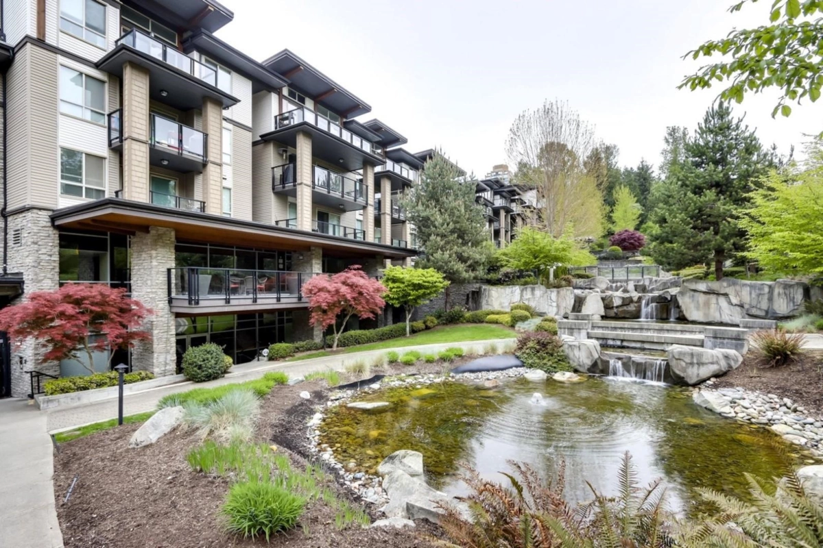 Award-winning GREEN development by eco-conscious builder Adera, nestled in Byrne Creek Ravine Park! This 1 bedroom + den, 1 bath condo boasts an open layout with a well-designed kitchen featuring granite countertops & SS appliances, seamlessly connected to the dining area and a living room with a cozy electric fireplace. High-quality laminate flooring, in-suite laundry & a private balcony overlooking a garden and tranquil water features complete this charming home. Includes 1 parking & 1 locker; complex has EV chargers and ample visitor parking. Pets & rentals allowed. Seasons Club amenities: gym, sauna, yoga studio, lounge, party room, playground and outdoor BBQ. Conveniently located near Taylor Park Elementary, Edmonds Skytrain, Market Crossing & Highgate Malls and Riverway Golf Course.