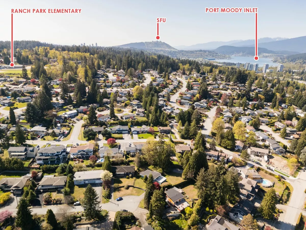 ENDLESS OPPORTUNITIES! Amazing 17,736 SF R1 lot in sought-after Ranch Park with breathtaking panoramic views of the city, Golden Ears and Mt. Baker. Tucked at the end of a quiet cul-de-sac, this property is a perfect site for a future SSMUH multiplex development or an incredible opportunity to renovate the existing mid-century post and beam home into an architectural masterpiece. This 3+ bedroom, 2 bath home features an open layout, vaulted ceilings, double garage and a park-like yard with sport court. Close to excellent schools, parks, shopping and transit. A rare chance to own this dream multi-generational estate in one of Coquitlam's best areas!