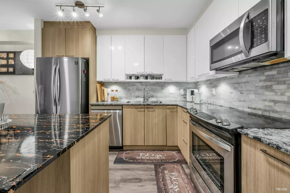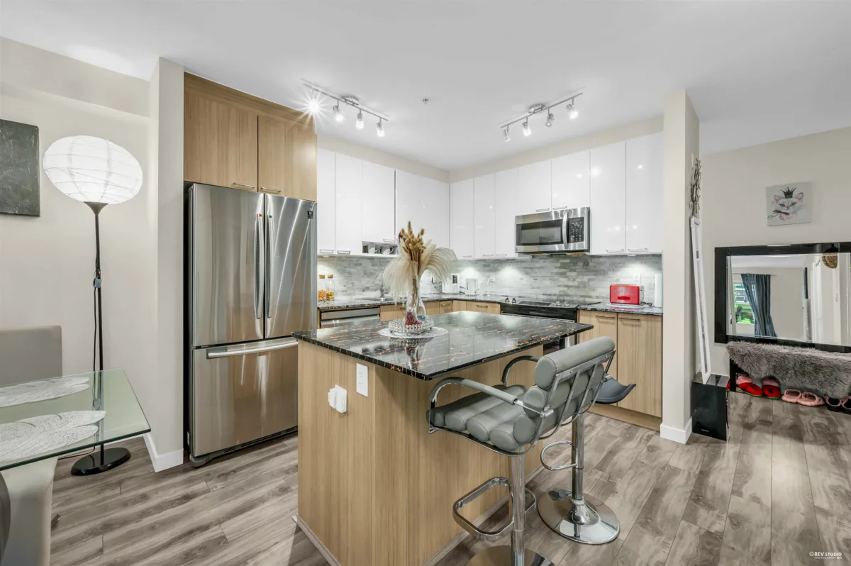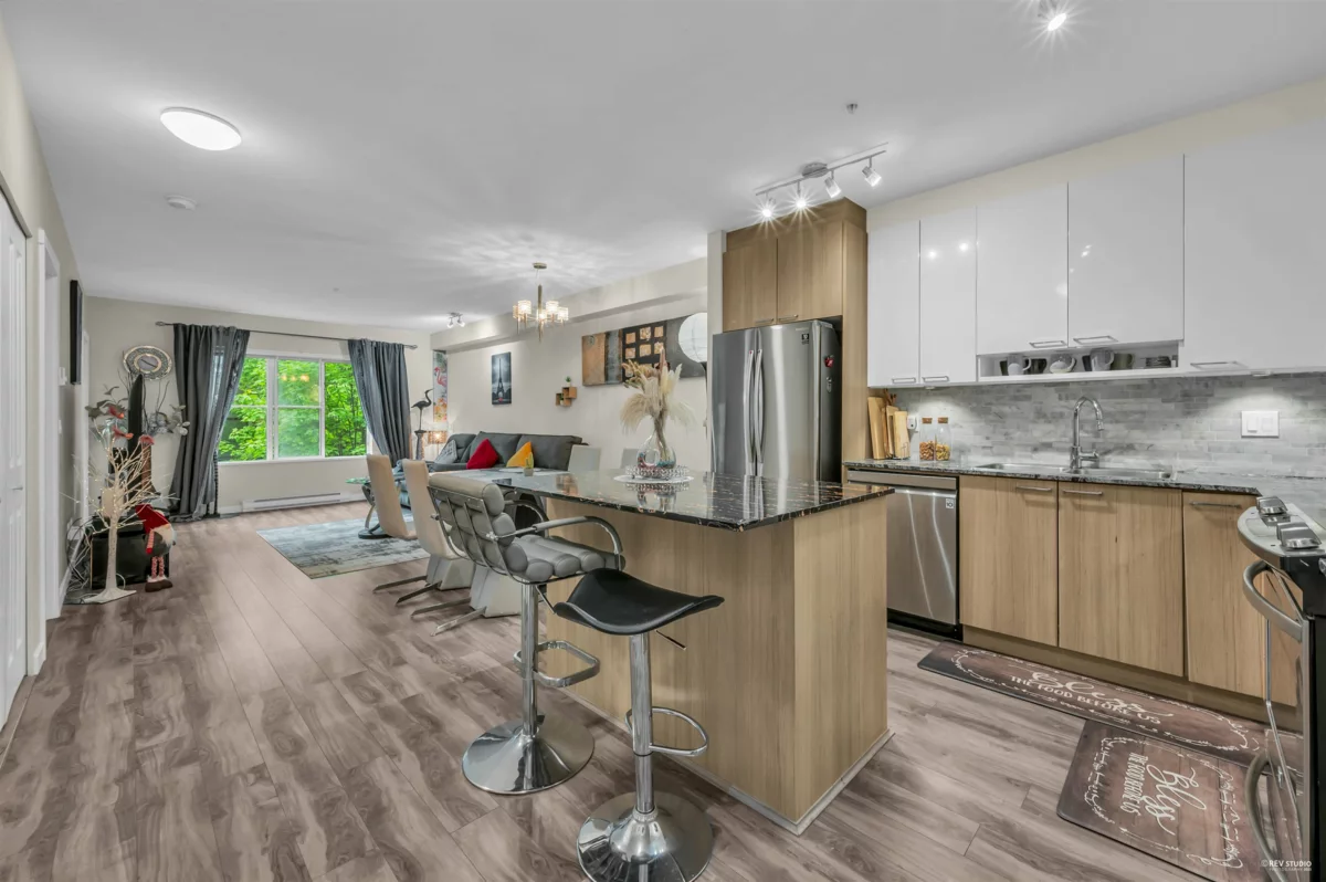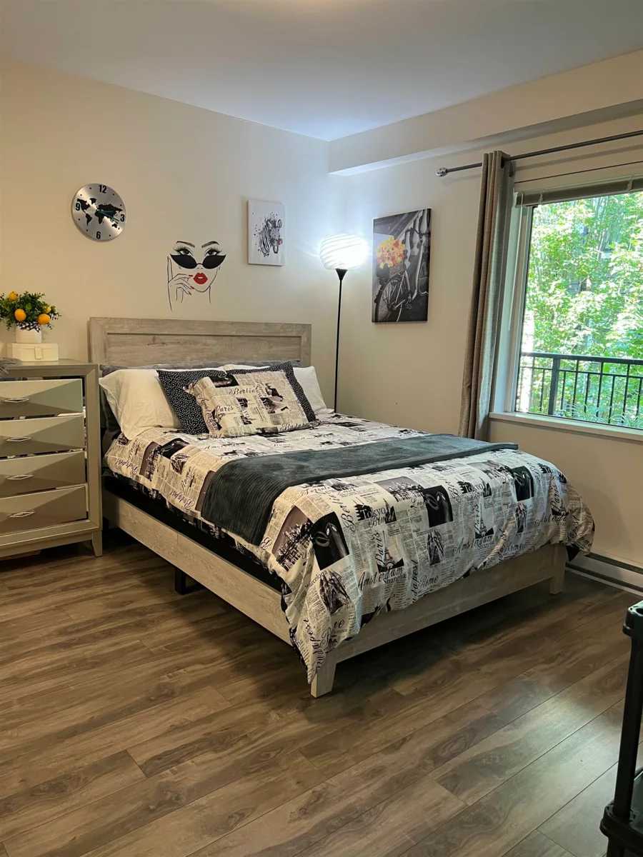 Welcome to this bright and modern 1-bed + junior suite condo in Maillardville, Coquitlam! Just minutes from IKEA, Hwy 1, and Braid SkyTrain, this home offers exceptional convenience. Features include an open layout, sleek kitchen with quartz counters and stainless steel appliances, updated laminate flooring, and large windows. The junior suite is ideal as a home office, guest room, or nursery. Enjoy a private balcony, 4-pieces bath, in-suite laundry, 1 parking, locker, gym, and amenities room. Pet-friendly and rentals allowed. Steps to shops, dining, and parks!