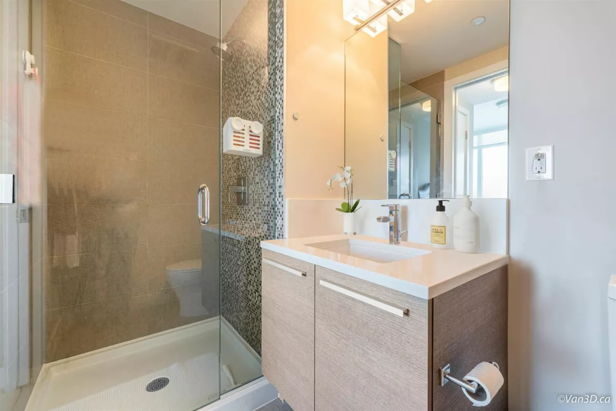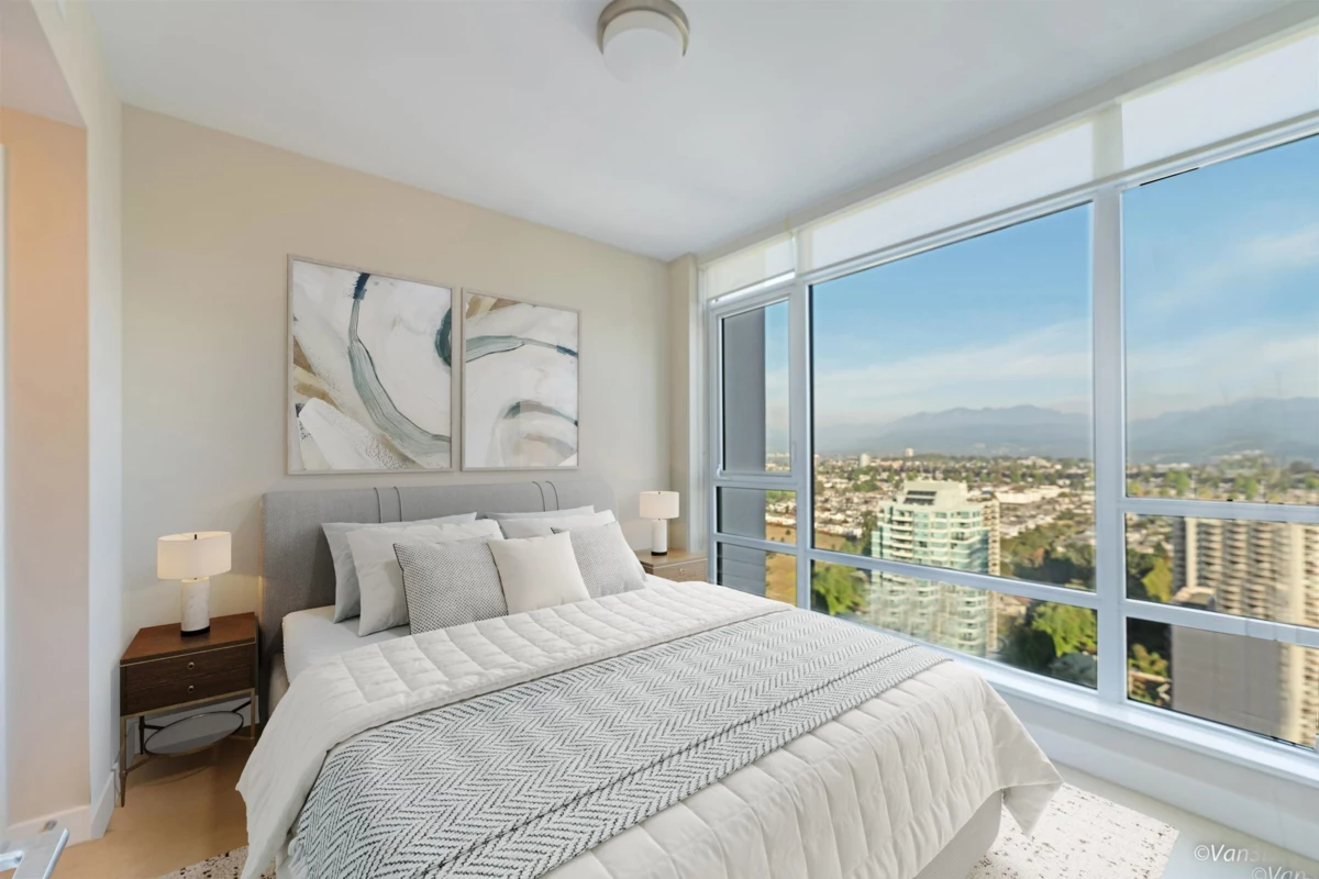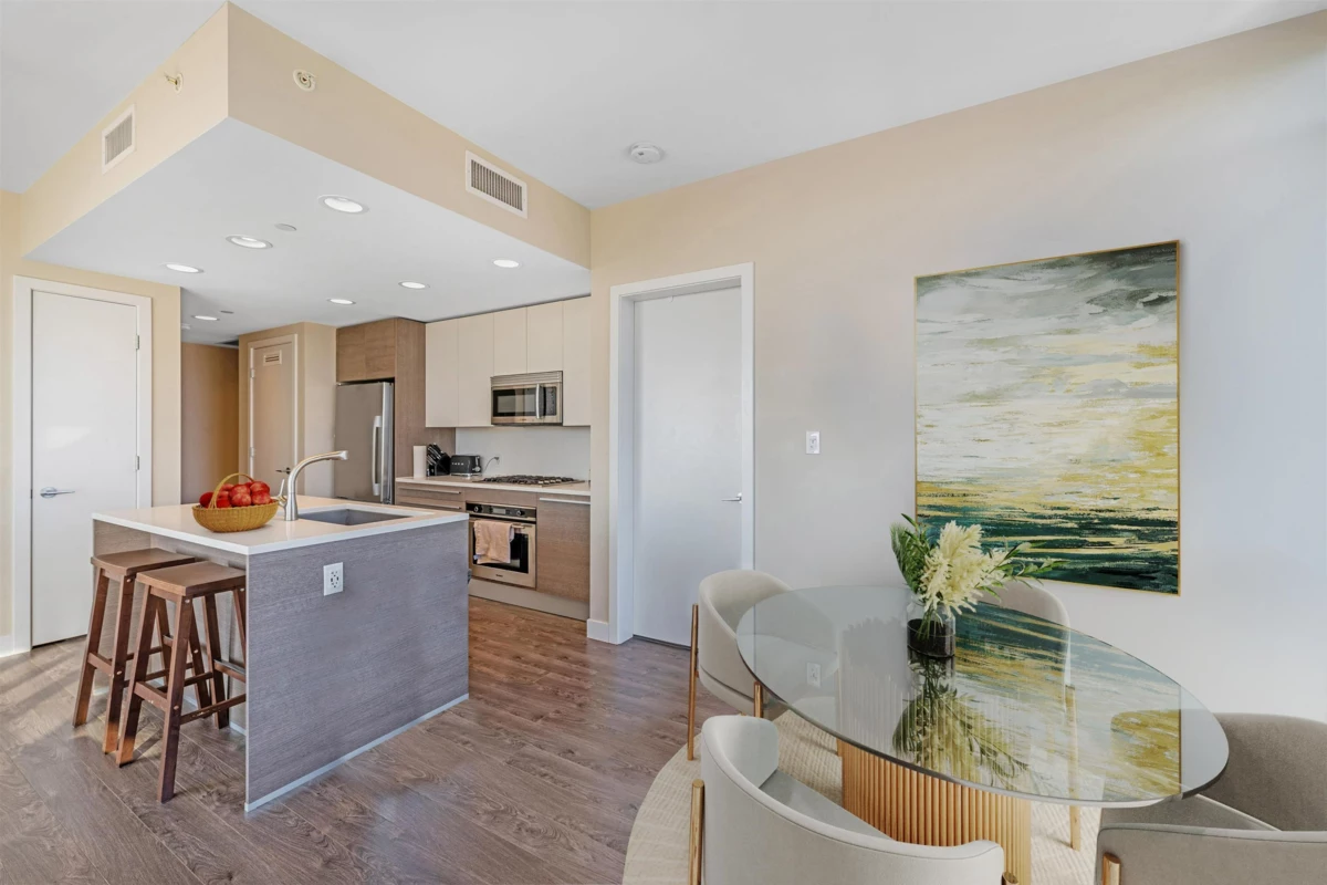 Rarely Available 2 Bedroom, 2 Bathroom Corner Unit at Stratus in SOLO District Welcome to Unit 3104 — a bright and elegant NE corner suite offering 922 sq. ft. of thoughtfully designed living space with breathtaking mountain views and air conditioning for year-round comfort. The open-concept layout features a modern kitchen with quartz countertops, high-end stainless steel appliances, and a gas stovetop. Bedrooms are thoughtfully placed on opposite sides for optimal privacy. Resort-style amenities include a fitness centre, sauna, guest suite, and concierge. Located above Whole Foods and steps from shops, services, SkyTrain, and Highway 1. Includes 1 parking stall and 1 storage locker. Don’t miss this incredible opportunity! By appointment.
