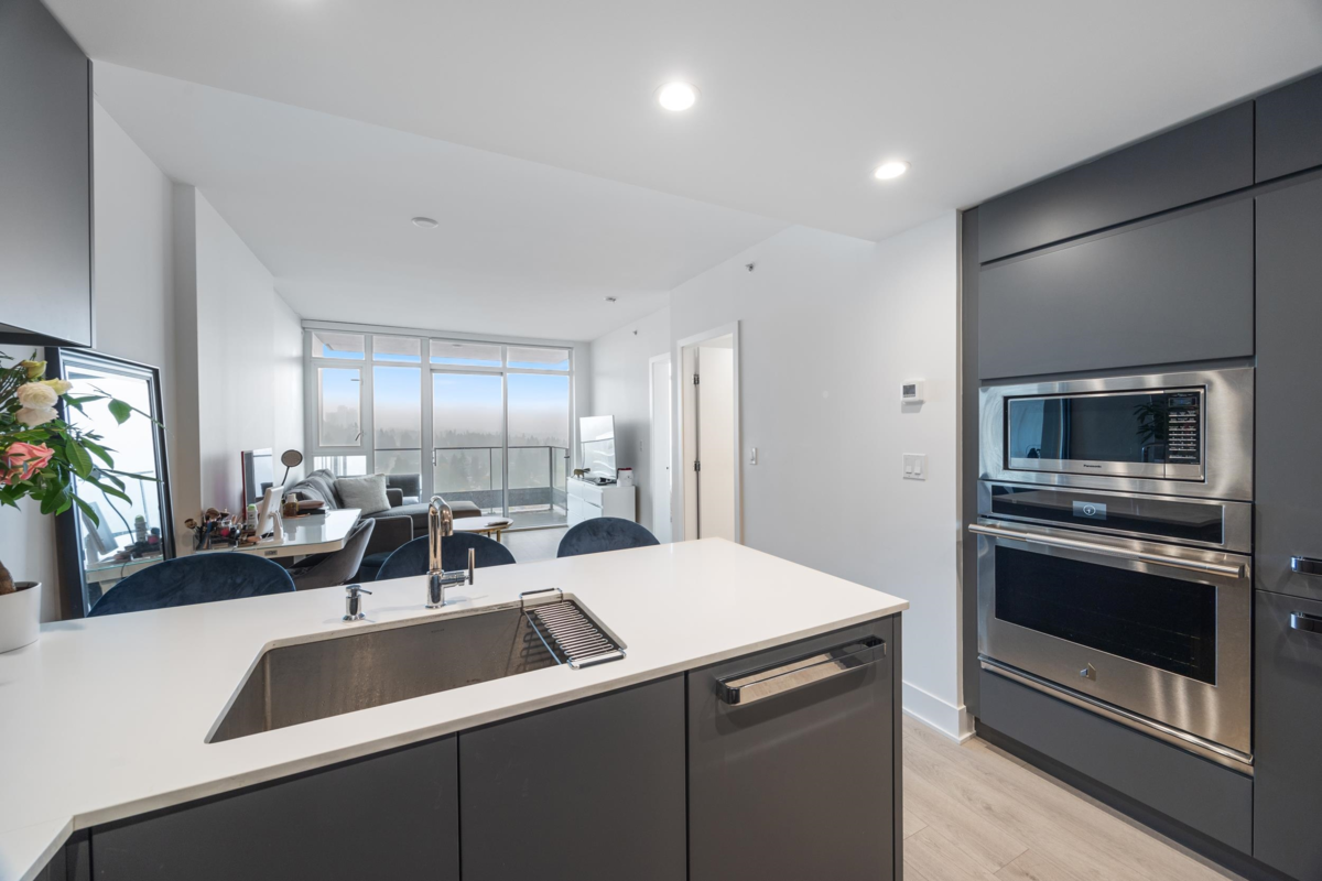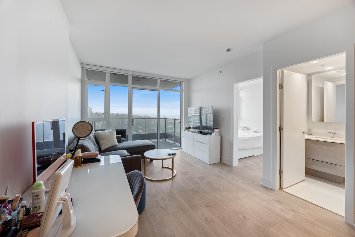 Experience breathtaking city and mountain views from this immaculate one-bedroom home at Hensley by Cressey. Designed for modern urban living, this bright, open-concept suite features floor-to-ceiling windows, high-end finishes, and air conditioning for year-round comfort. The sleek kitchen showcases integrated appliances, quartz countertops, and the renowned Cressey Kitchen™ design with abundant storage and workspace. The spacious bedroom provides a peaceful retreat with generous closet space. Comes with one secured parking stall and a storage locker. Enjoy world-class amenities including an outdoor pool, hot tub, steam room, fitness centre, rooftop lounge with panoramic views, social lounge, and concierge service. Ideally located near Lougheed Mall, Hannam Supermarket, SkyTrain, cafes.