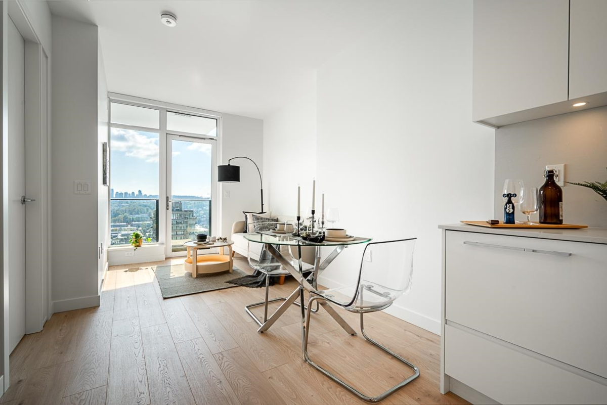 Experience elevated living at Akimbo in Brentwood! This stunning south facing 1 bedroom on the 31st floor offers panoramic city views, floor to ceiling windows, 9’ ceilings, and a spacious balcony. The open concept layout features quartz countertops, stainless steel appliances, and a full size washer/dryer. A family member currently resides in the unit, allowing for a quick and flexible move in. Includes 1 parking and 1 storage locker. Amenities include concierge, gym, guest suite, party lounge, BBQ terrace, and garden. Steps to Brentwood Mall, Gilmore SkyTrain, Whole Foods, parks, and more, luxury and convenience in one of Burnaby’s most vibrant communities! The unit is exceptionally clean, well cared for, and fully move in ready, making it an easy and effortless place to call home.