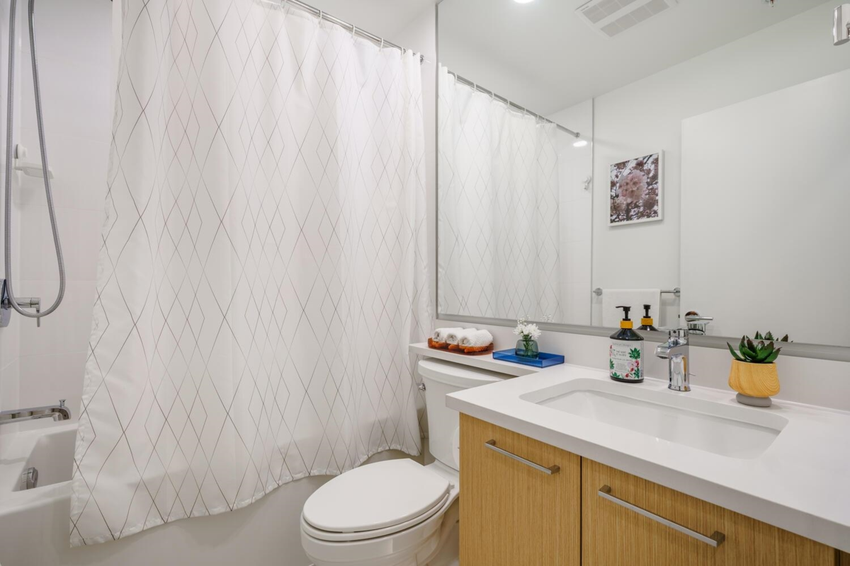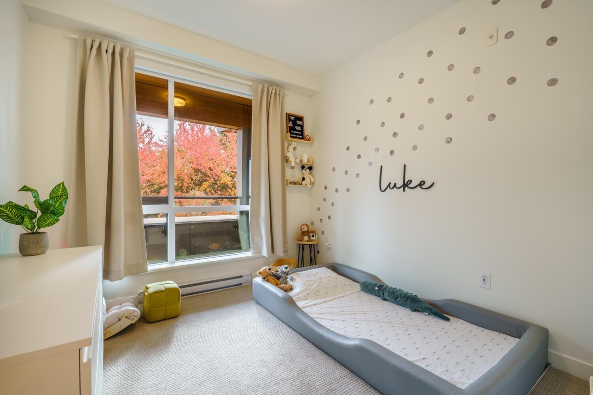 Welcome to CEDAR CREEK - a signature collection by Ledingham McAllister. This elegant, nearly new 2-bdrm, 2-bath condo offers 783 sqft of thoughtfully designed living. Enjoy a modern open-concept layout featuring a stylish kitchen with full-size s/s appliances, quartz counters and 9-ft ceilings. Expansive windows fill the home with natural light, while the generous SE-facing balcony overlooks a tranquil treed setting. 1 parking and 1 storage locker. Pets and rentals welcome. Residents also enjoy premium amenities such as a fitness centre, guest suite, children’s playground, car wash station, and community garden. Ideally situated just minutes from Edmonds SkyTrain Station, Highgate Village, top-rated schools, and beautiful parks.