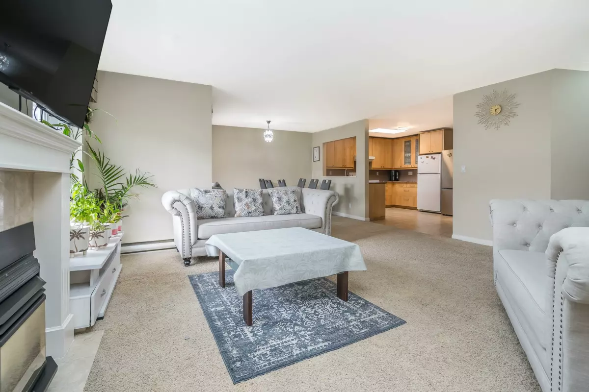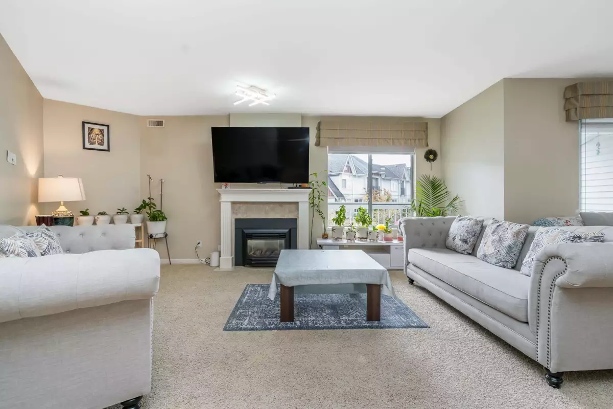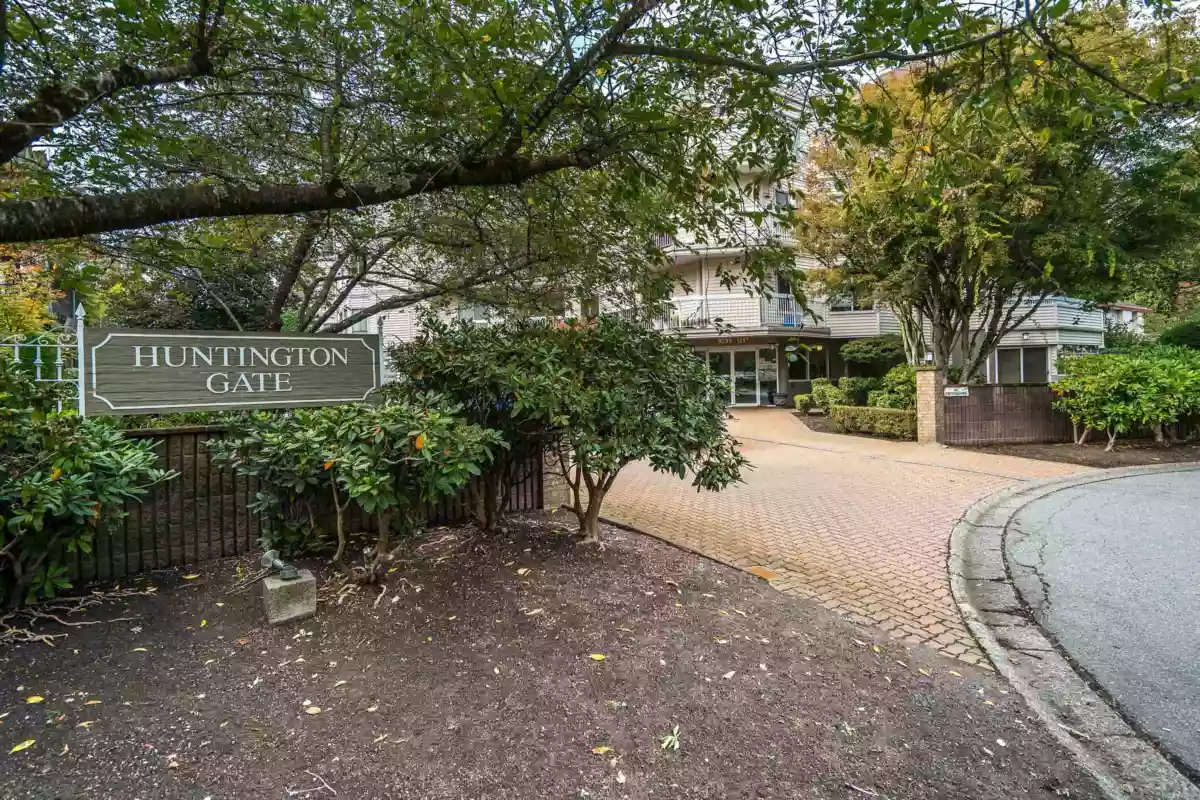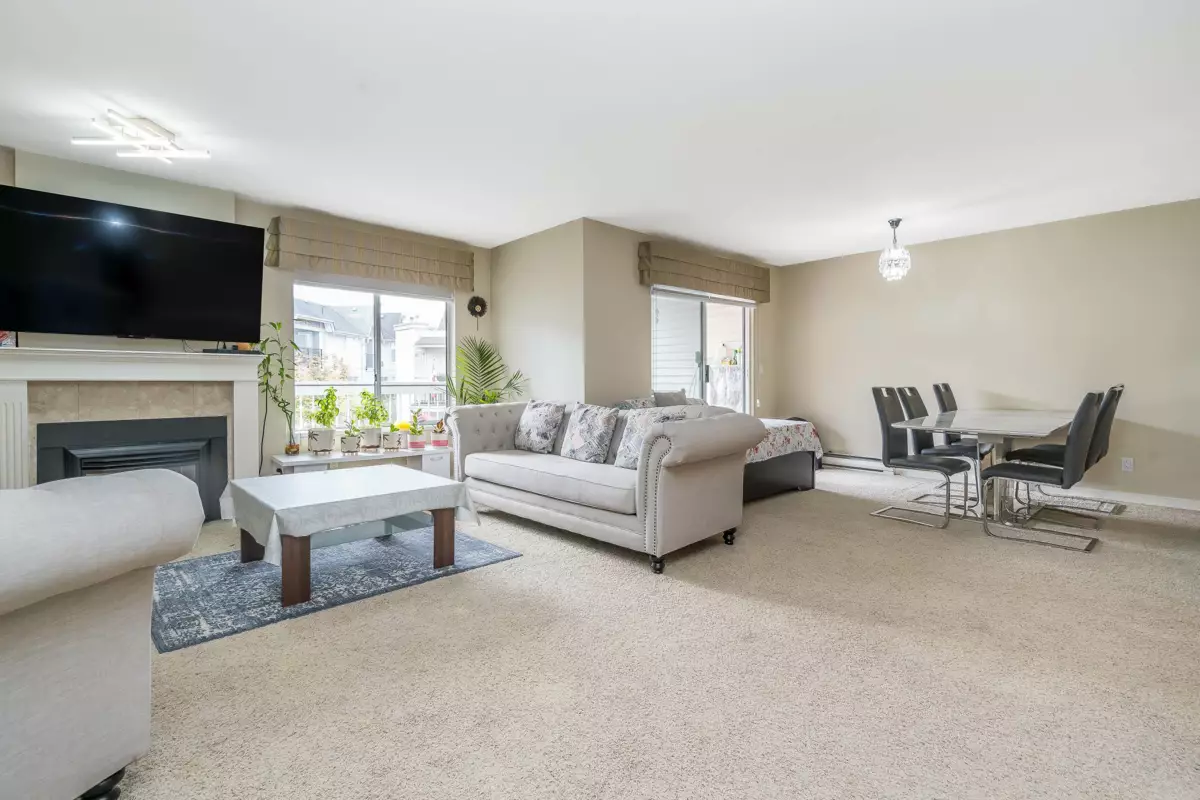 Welcome to Huntington Gate Unit 315! This stunning top-floor 1,217 sq. ft. home offers a spacious open-concept layout you’ll love. The massive living and dining area features a gas fireplace (gas included in strata fees), creating the perfect spot to relax or entertain.The updated kitchen includes a large eating area, pantry, and skylight. A generous primary bedroom with full ensuite and a full-sized second bedroom. Large covered deck, perfect for barbecuing or simply enjoying the outdoors. This well-maintained building is centrally located, just minutes from shopping, schools, transit, and with easy access to the Alex Fraser and Pattullo Bridge. Includes 2 secured underground parking stalls, and the building allows 2 pets with restrictions. Book your showing today!