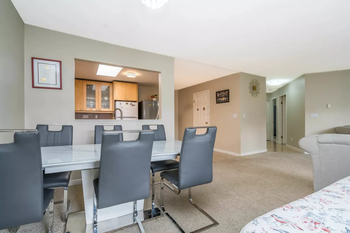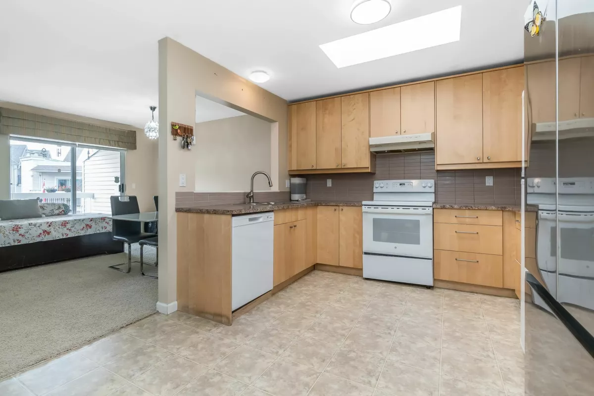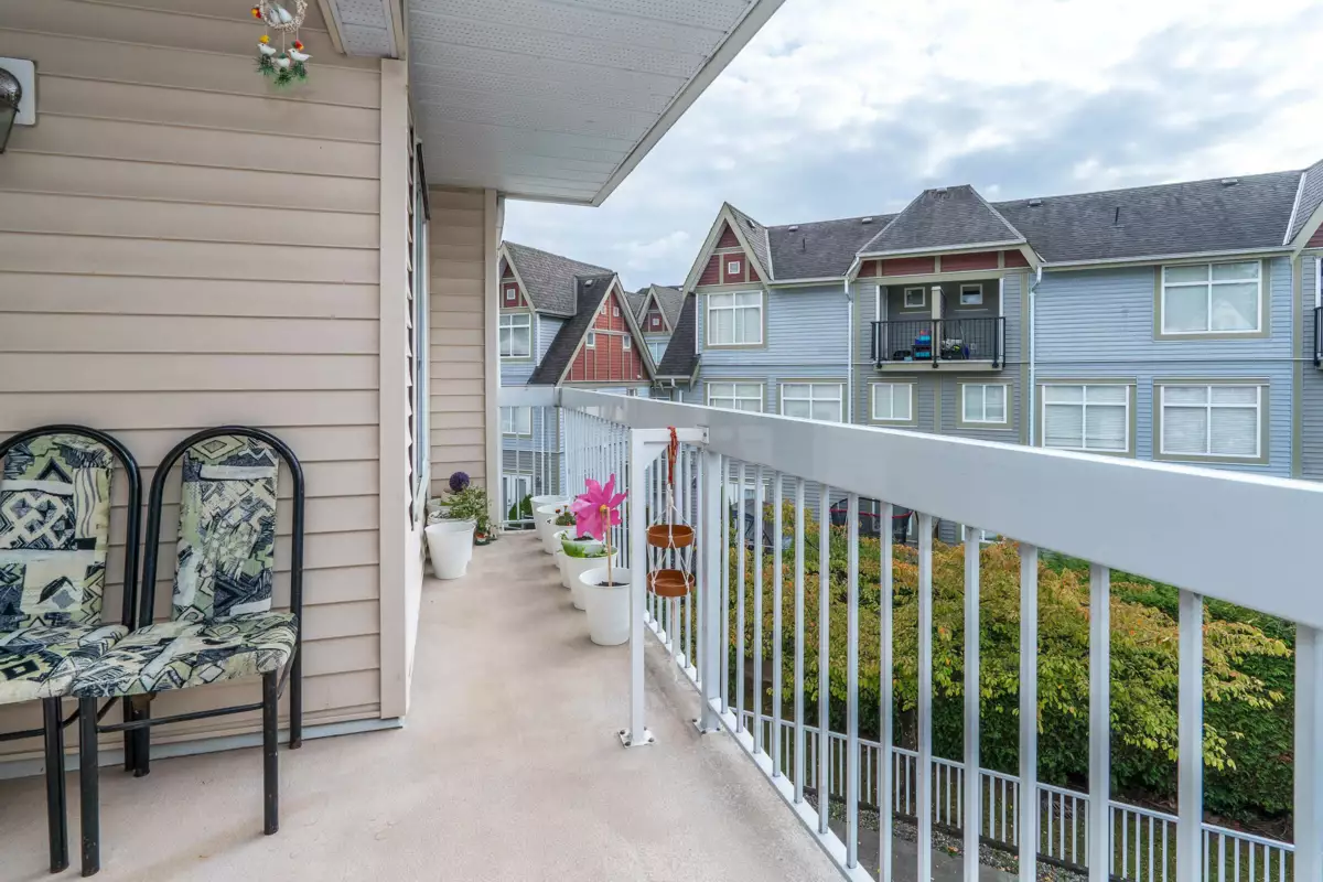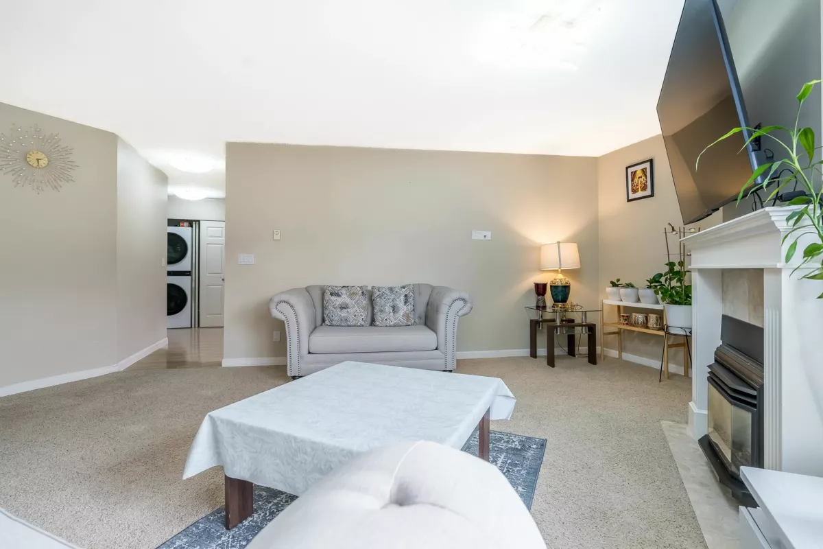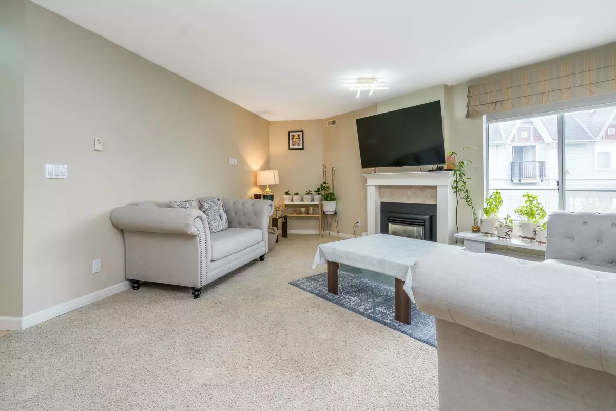 Welcome to Huntington Gate Unit 315! This stunning top-floor 1,217 sq. ft. home offers a spacious open-concept layout you’ll love. The massive living and dining area features a gas fireplace (gas included in strata fees), creating the perfect spot to relax or entertain.The updated kitchen includes a large eating area, pantry, and skylight. A generous primary bedroom with full ensuite and a full-sized second bedroom. Large covered deck, perfect for barbecuing or simply enjoying the outdoors. This well-maintained building is centrally located, just minutes from shopping, schools, transit, and with easy access to the Alex Fraser and Pattullo Bridge. Includes 2 secured underground parking stalls, and the building allows 2 pets with restrictions. Book your showing today!