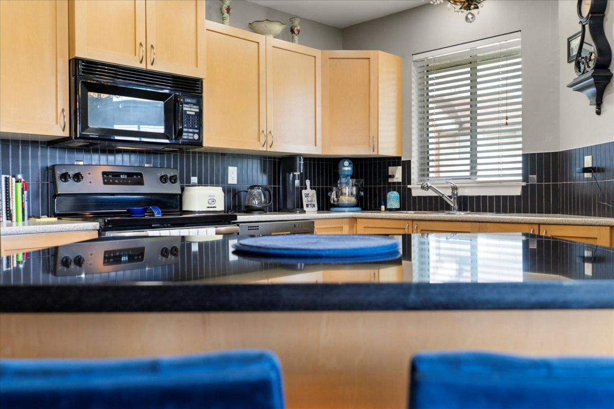 Welcome home to Uptown. This home features 2 bedrooms and 2 bathrooms in a bright and spacious top floor corner unit. You will love the kitchen with shaker style cabinets, tile backsplash, granite counters, eating bar, and stainless steel appliances with a flat top stove. The primary bedroom features a walk in closet and full ensuite. This home is located on the quiet and private NW corner of the building and also features 12 ft vaulted living room ceilings, a private balcony, and in-suite laundry. This home is in excellent condition throughout and you will appreciate the great location within walking distance of many amenities. This home also includes 2 underground parking stalls. 2 pets allowed with restrictions. Check out the photo tour, floorplan, and call today to view this home!
