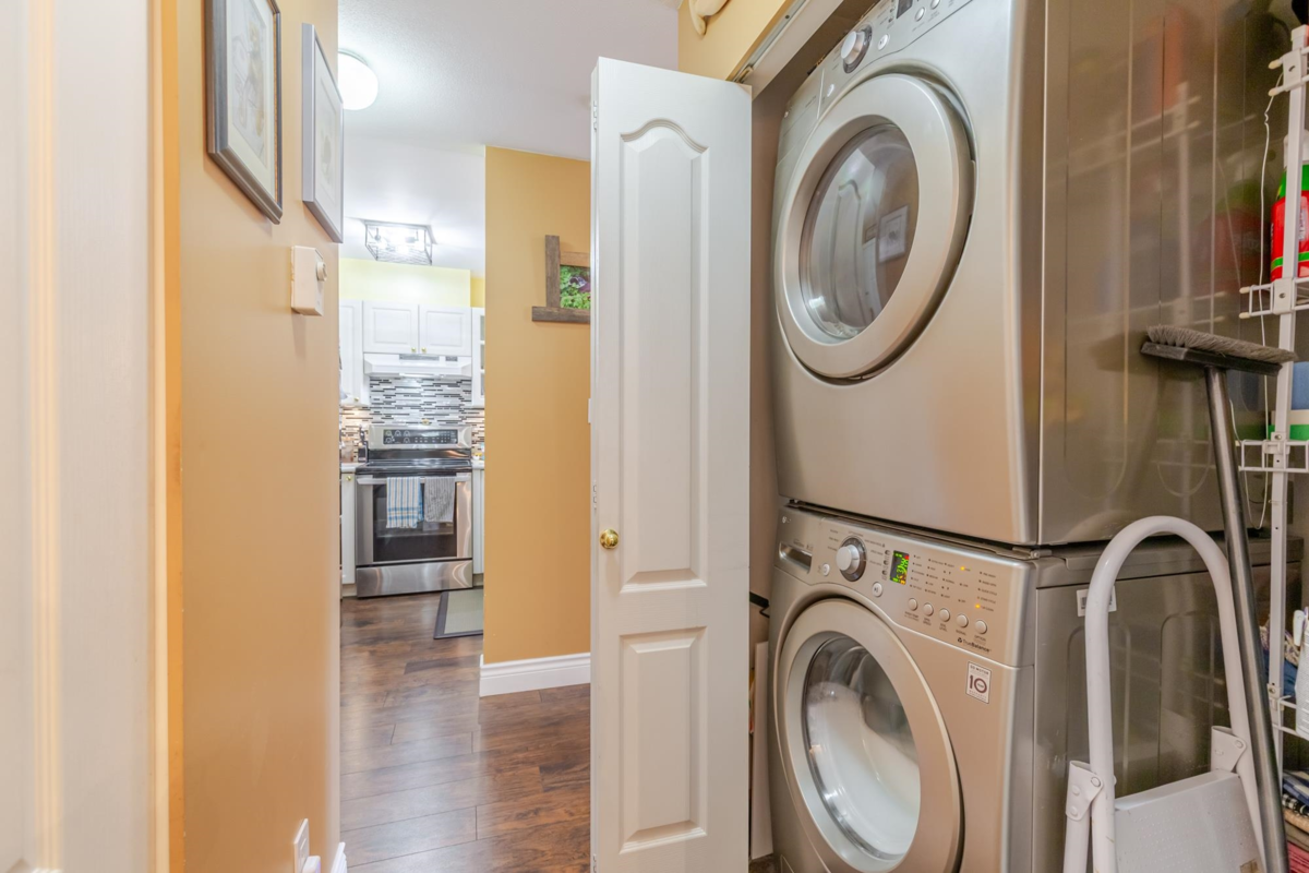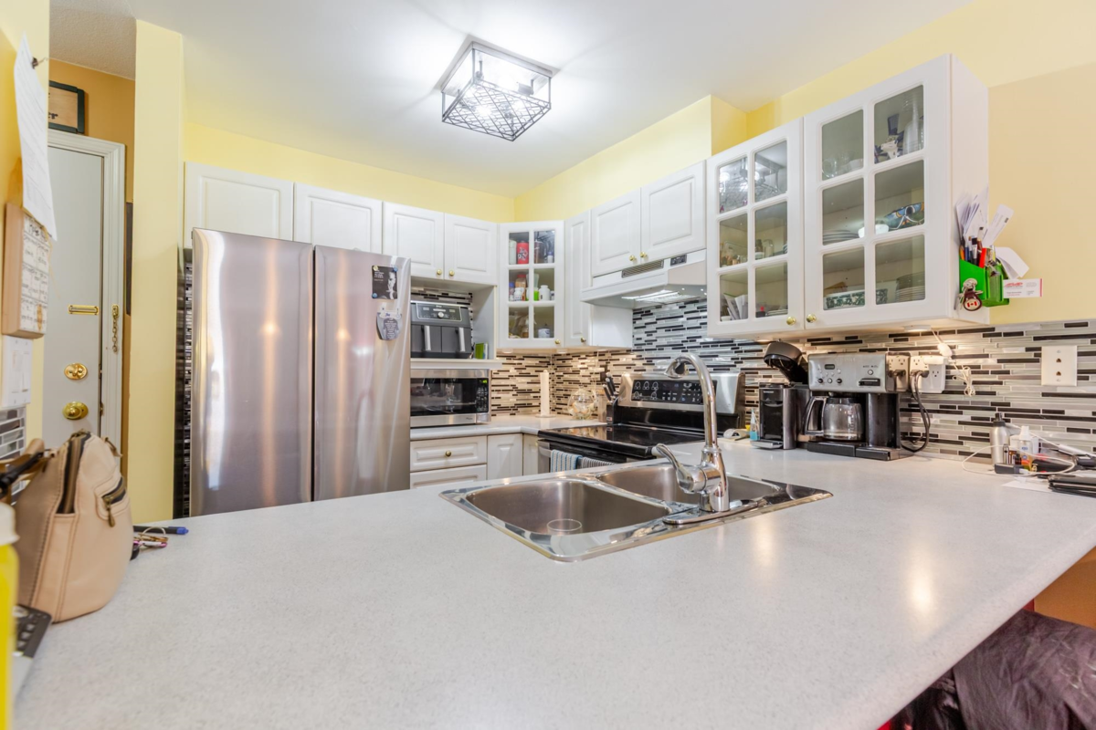 Attention first time home buyers! Listed well under assessment! Welcome to this top floor 1 bed / 1 bath condo! This bright & spacious home is very quiet with a large south facing balcony over looking the inner courtyard. Generous rooms sizes featuring a cozy gas fireplace, white kitchen with newer appliances, and a great floorplan. Very tidy updated building close to everything you need- shops, transit, schools, and freeway access. Family orientated complex with a very proactive strata with reasonable fees which include a gym & sauna . Rentals, pets and all ages allowed! Make your appointment today!
