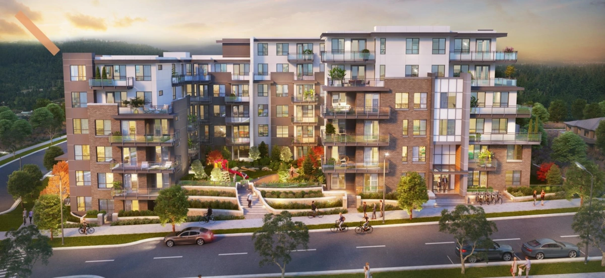 Welcome to Dansey! A steel frame constructed 6-story building located in the central West Coquitlam neighbourhood. This SOUTHEAST view facing 1 bedroom 1 bath unit in Dansey Coquitlam is estimated to be completed Winter 2025. This unique building offers state-of-the-art Merv 13 air filters providing superior air filtration and air quality for residents with over 4,400 sq.ft of outdoor amenity space including inner courtyard, dining area, children’s play area and yoga space. This home includes gorgeous herringbone pattern luxury flooring, a gas cook-top, built-in oven as well as an integrated refrigerator and dishwasher. One EV-ready parking stall and one storage locker included. $10000 credit from developer on completion for purchaser. The completion estimate time is Feb 1 to May 1, 2026.