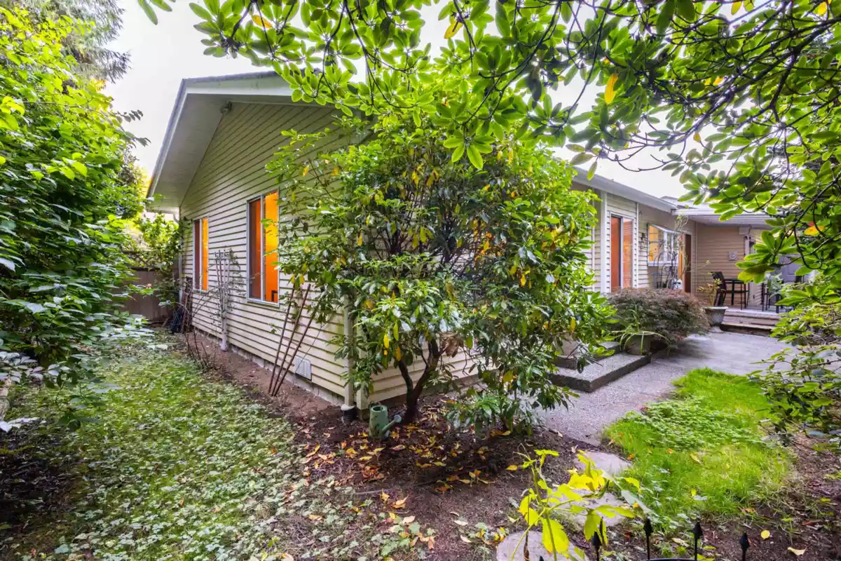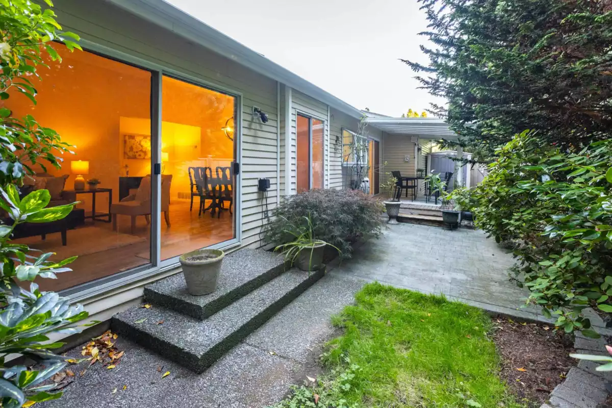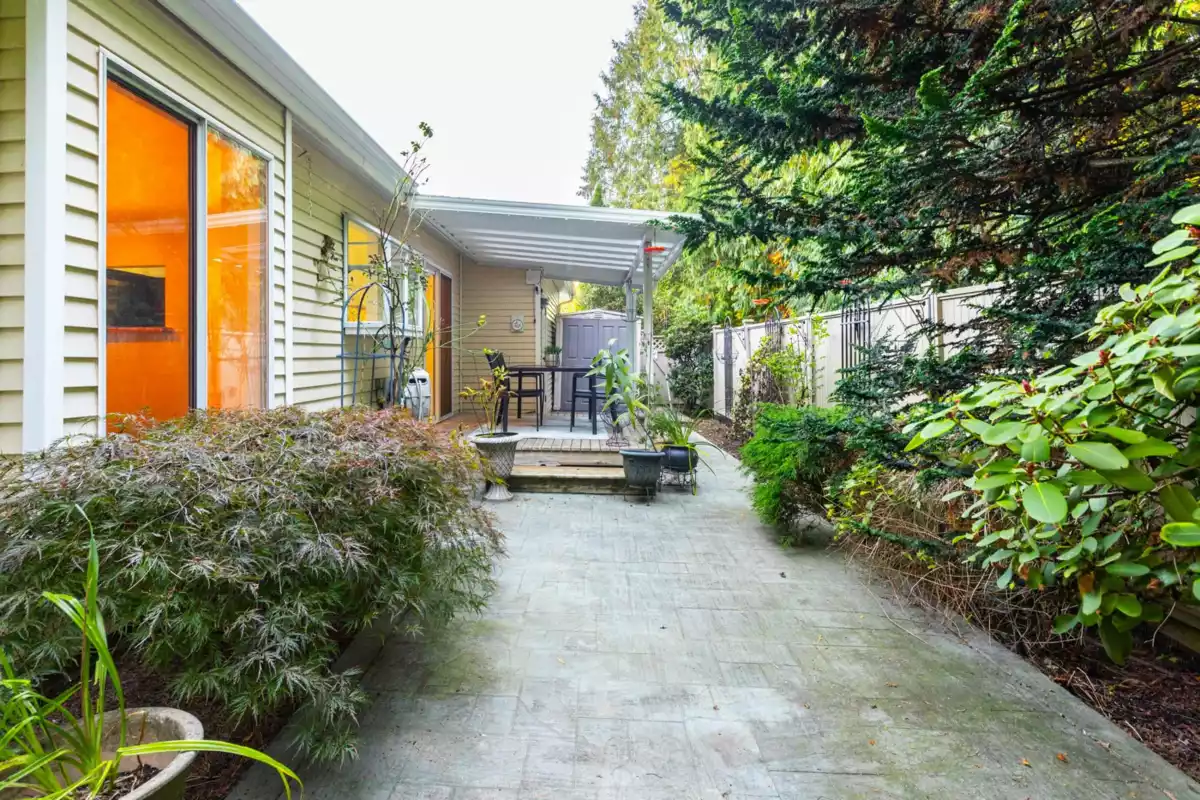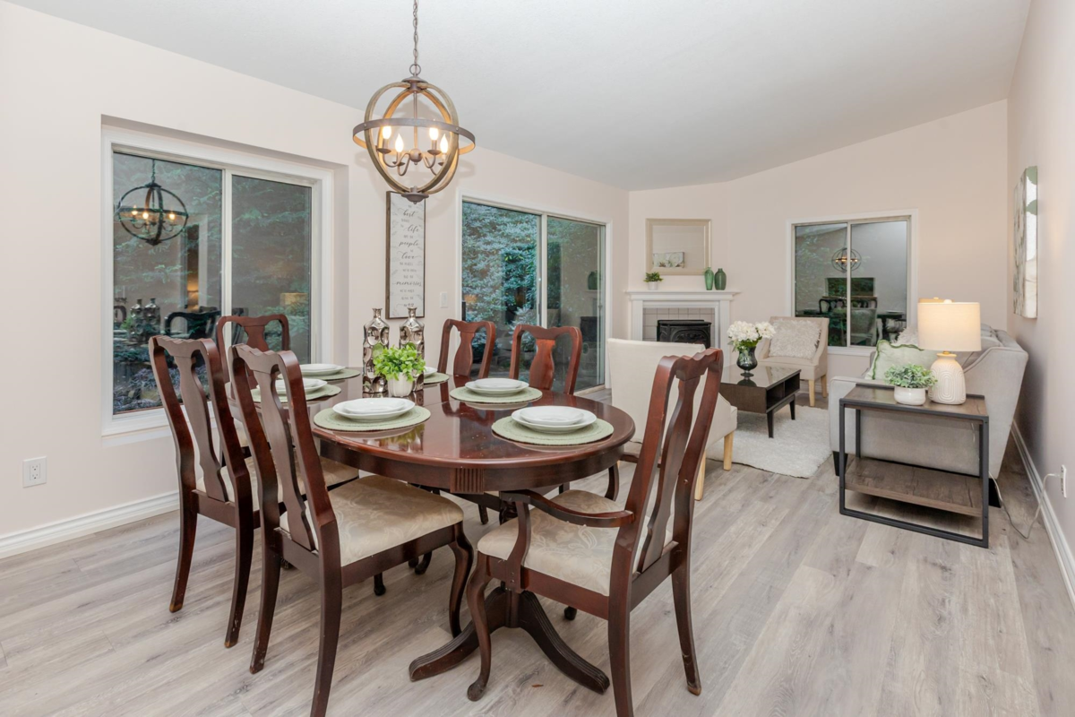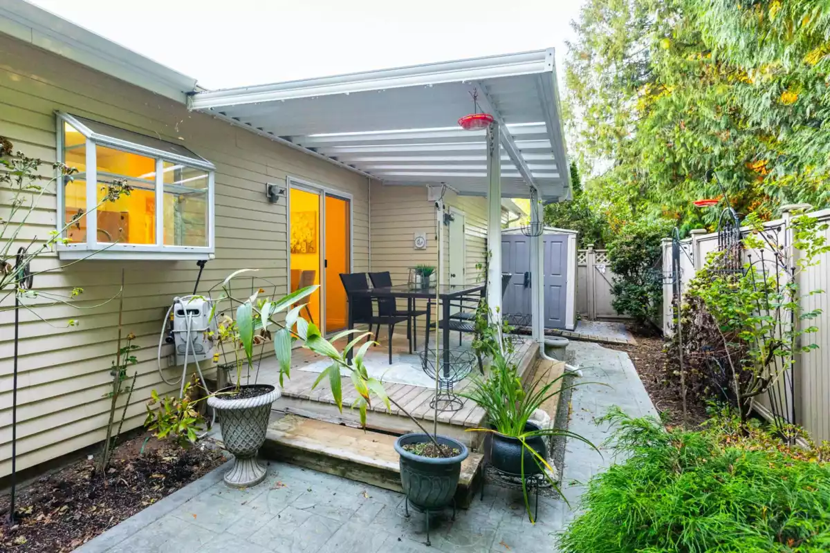 Gorgeous, detached rancher in desirable 55+ Gateway Gardens. Prime location backing & siding onto Carlson Creek greenbelt for ultimate privacy! Extensively updated, this 2 bedroom, 2 bath home boasts a large living room with wide plank vinyl flooring, gas fireplace, vaulted ceiling, glass sliding door access to side patio, and adjacent dining area. Kitchen with plenty of counter and storage space, eating area with access to covered deck, fenced yard with mature landscaping, & shed. Generous sized primary bedroom with double closets & 4 pc ensuite, 2nd bedroom, 3 pc main bath, & laundry. Garage & crawlspace storage! Great complex with clubhouse, guest suite, & plenty of visitor parking. Low strata fee of only $186.30/mth. One small pet allowed.