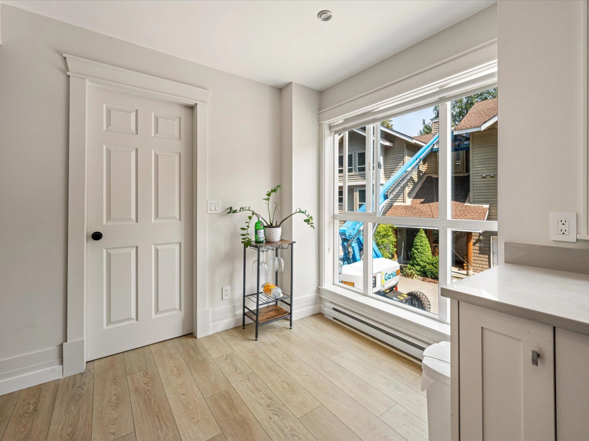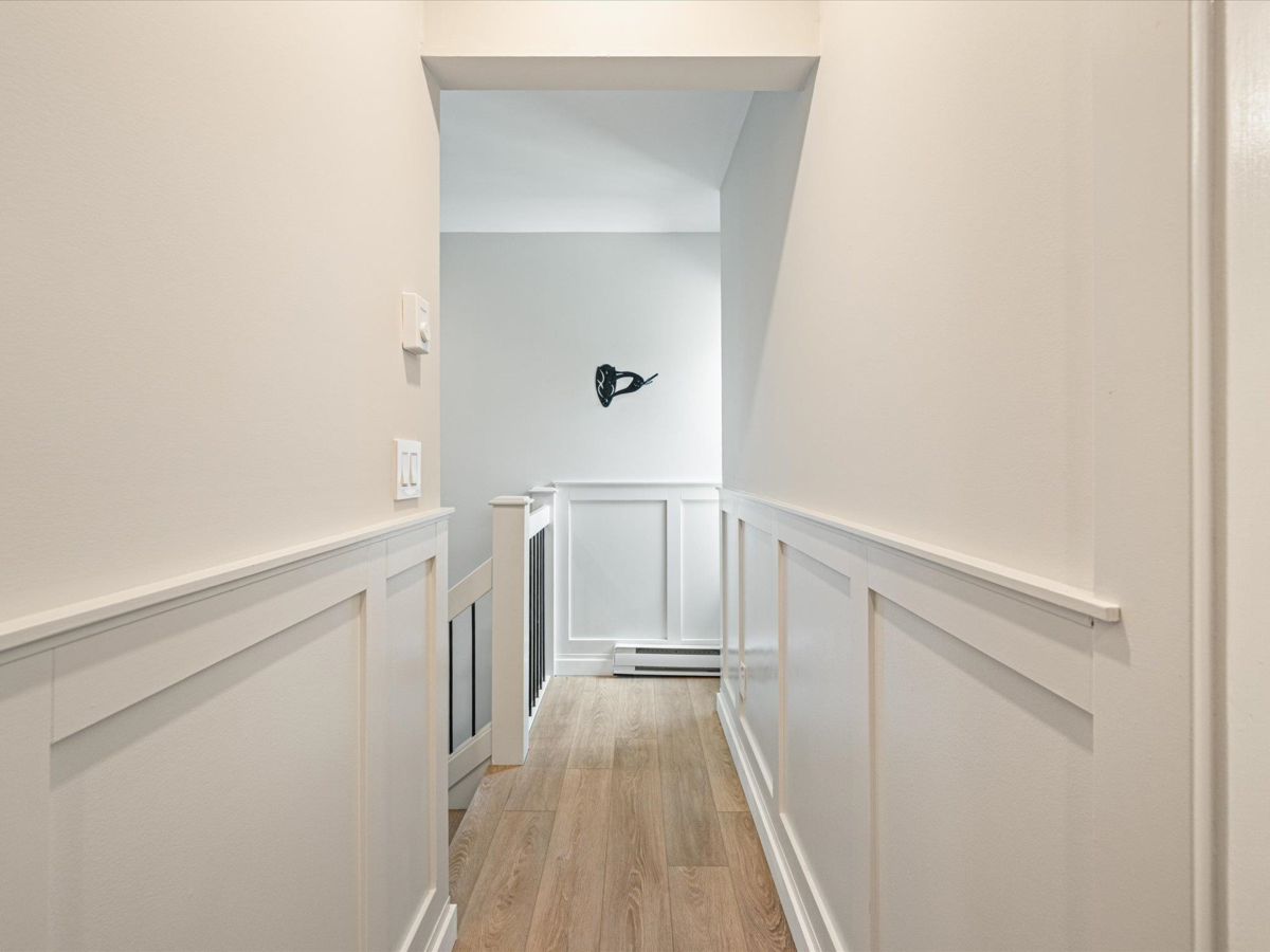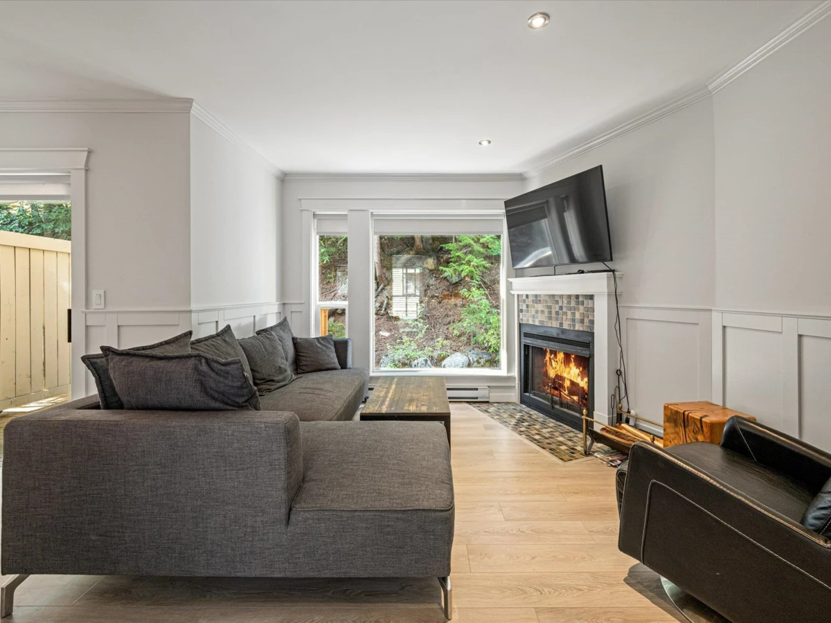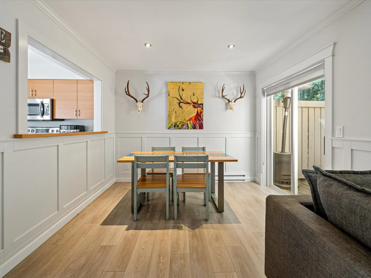 Bright and spacious 2-bed & 1.5 bath townhouse in Creekside Village has been thoughtfully updated with modern, functional finishes & new flooring throughout. Downstairs features a 2-car garage with a new door—as well as a welcoming entryway with in-floor heating. Upstairs, the main living area offers an open, airy layout with large windows and a private deck that overlooks a serene forested backdrop. Stone countertops, SS appliances, and sleek, timeless cabinetry in the kitchen. On the top floor, you’ll find two comfortable bedrooms and a beautifully renovated main bathroom, complete with custom tile work and a double vanity. Additional upgrades include new plumbing (2010), updated heat registers, recessed lighting, fresh paint throughout, and modernized outlets and switches.