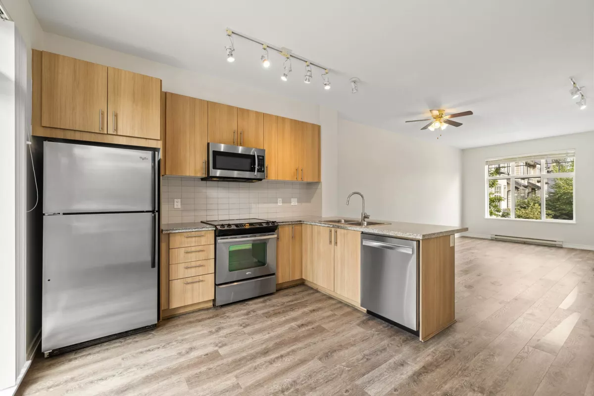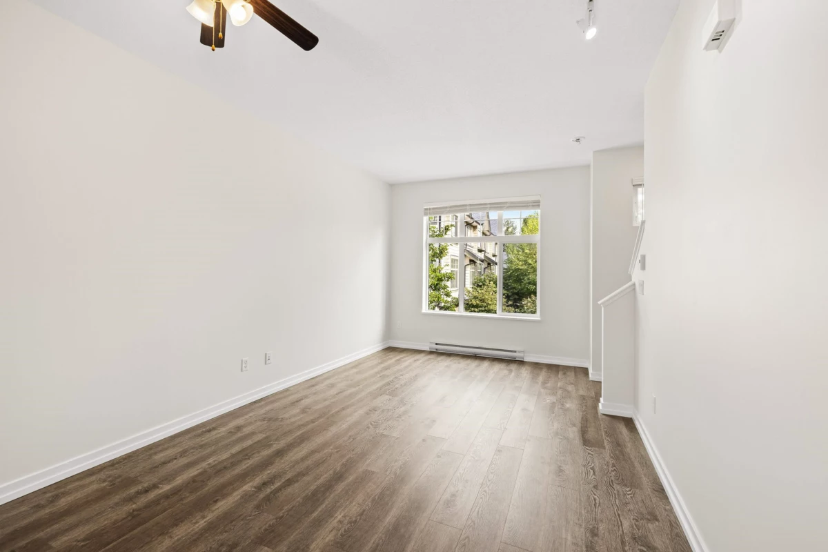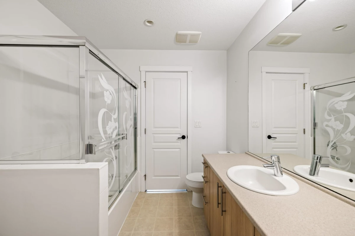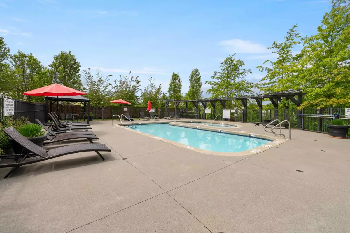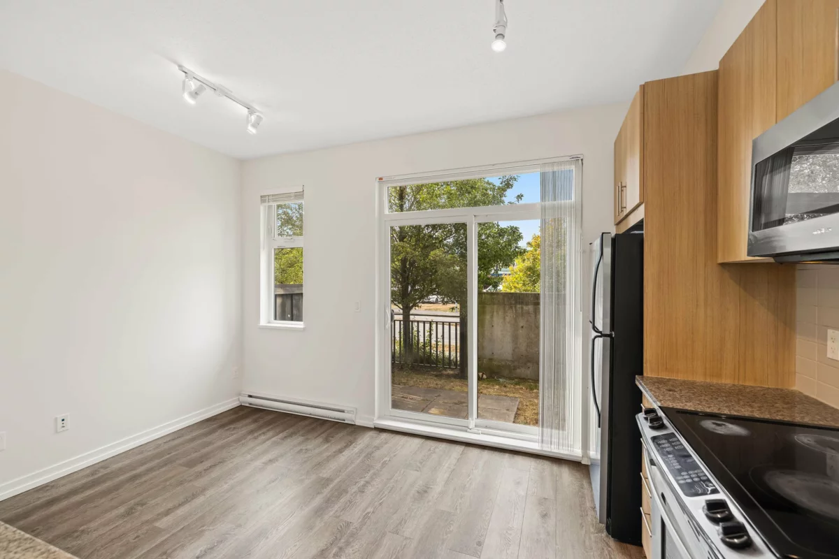 FANTASTIC VALUE! Why buy a condo when you can own a townhouse! This 2-bed, 1-bath townhome offers over 1,000 sq/ft in a master-planned community by Polygon! The OPEN floor plan features newer vinyl plank flooring, kitchen w/granite counters, S/S appliances, new dishwasher, dining area, spacious living room + a RARE walk out private yard off the main floor! Upstairs features a large primary bedroom w/cheater ensuite equipped w/double sink, separate tub & shower + another good sized second bedroom! Single car garage + a huge pad in front, big enough to fit a large pick-up truck! Across the street from Rick Hansen High School & a short walk to Eugene Reimer Middle School & Harry Sayers Elementary. Enjoy access to resort-style amenities! Pool, hot tub, gym, hockey room, guest suite & more!