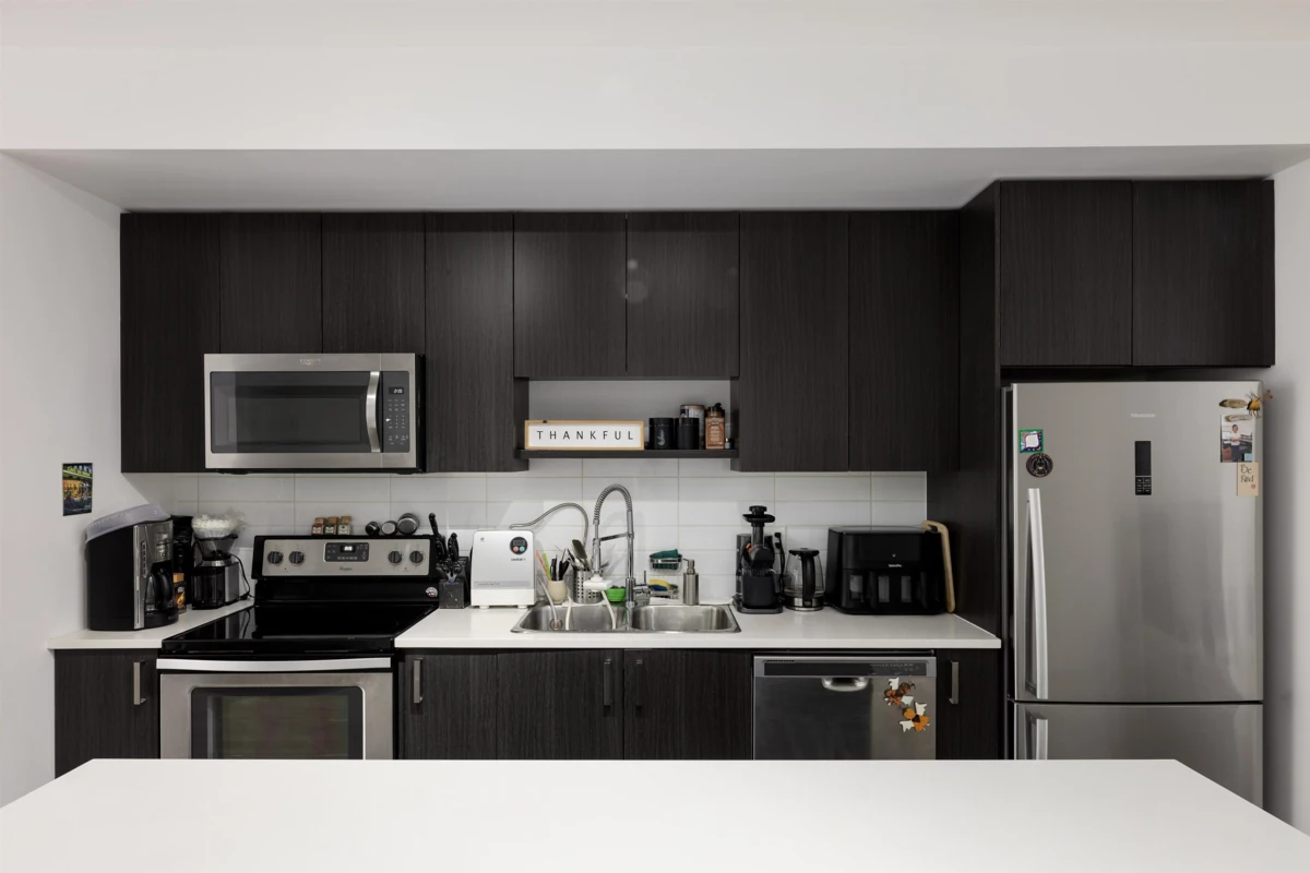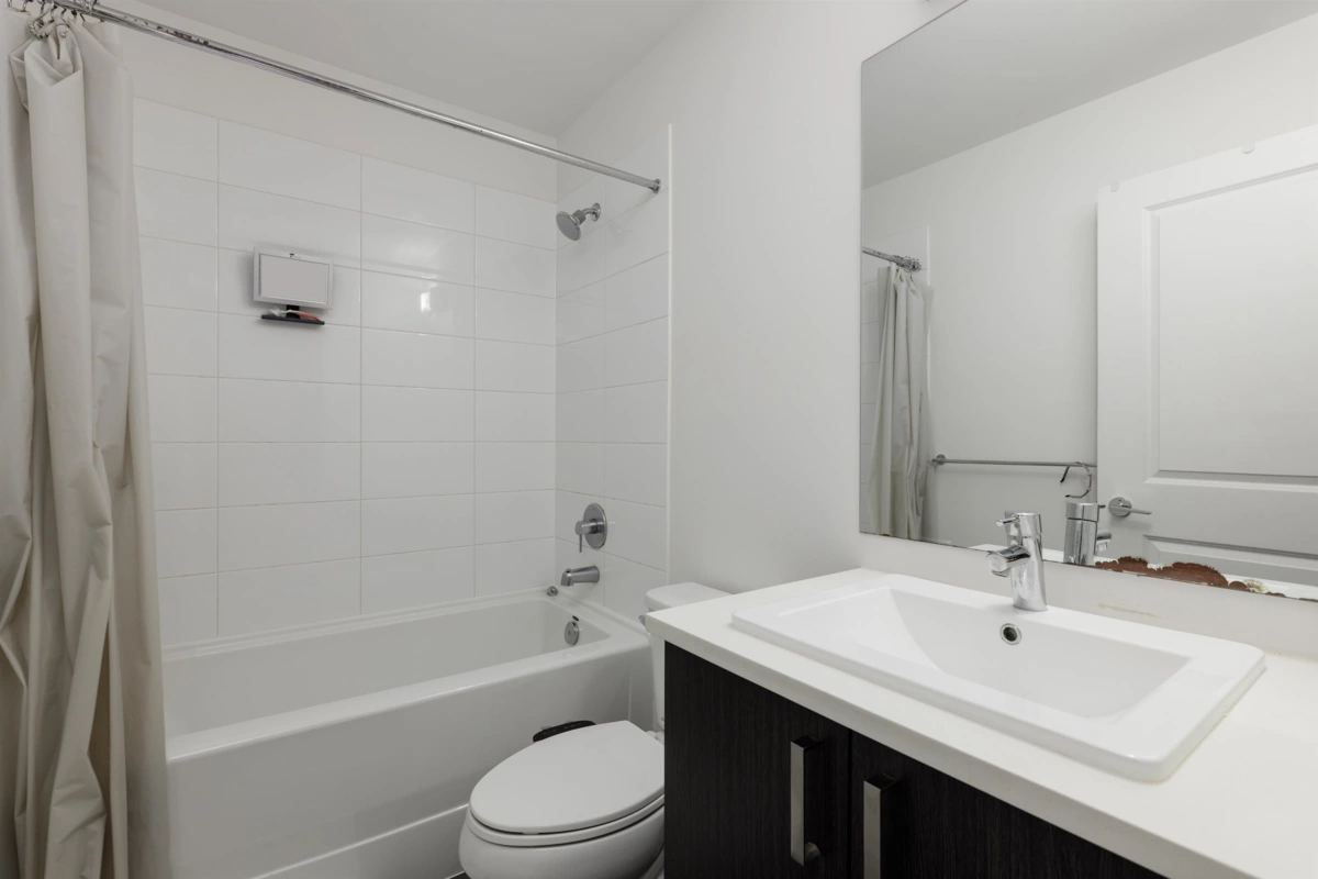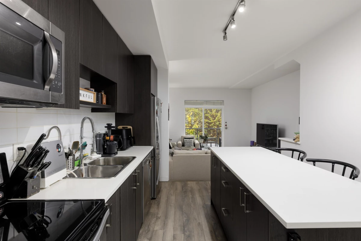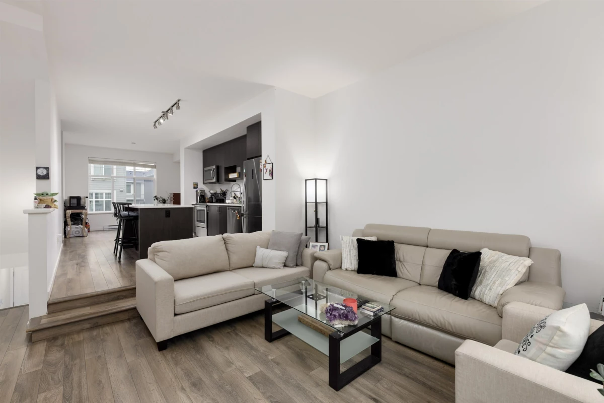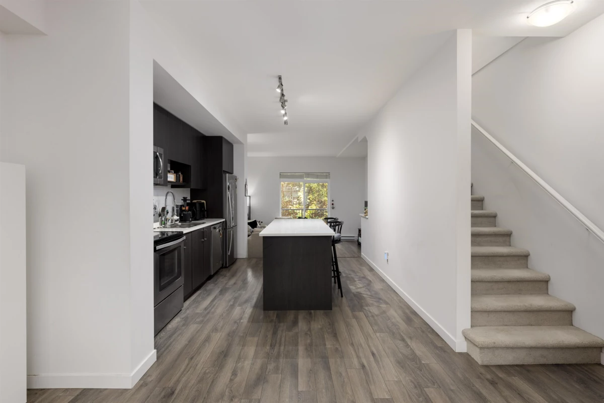 Welcome to this gorgeous 4 bed 2.5 bath classic shingle style townhouse. Conveniently located close to Surrey Central Mall, Transit, and vast green park space. This gorgeous open space living is connected to the gourmet kitchen offering a huge quartz island, stainless steel appliances, and expansive 9 ft ceilings with a powder room. A ground floor bedroom which can be used as an office or a bedroom. This townhome comes with two parking!