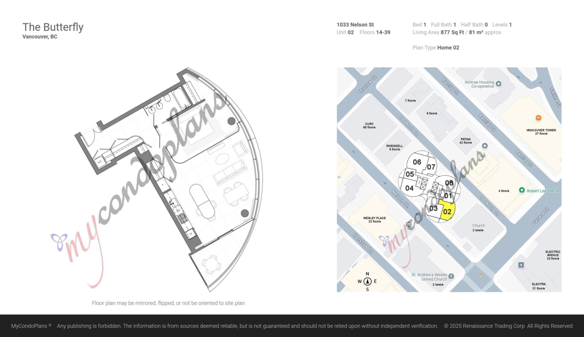 Welcome to The Butterfly, a stunning design by Revery Architecture. This southeast-facing, 1-bedrm, 1-bathrm home offers 877 sq. ft. of spacious living with floor-to-ceiling windows that showcase breathtaking city views and fill the space with natural light. The interior includes high-end Miele appliances, Italian cabinetry, and a fully automated smart home system. It also comes with two side-by-side parking spots and one locker. The Butterfly offers exceptional amenities, including a 50-meter glass-roofed pool, a fully equipped fitness center, a yoga room and more. The building also has a 24-hour concierge service and digital video surveillance for security. Located in Vancouver’s West End, this home is steps from English Bay, Stanley Park, and luxury shopping on Alberni Street. Must See!