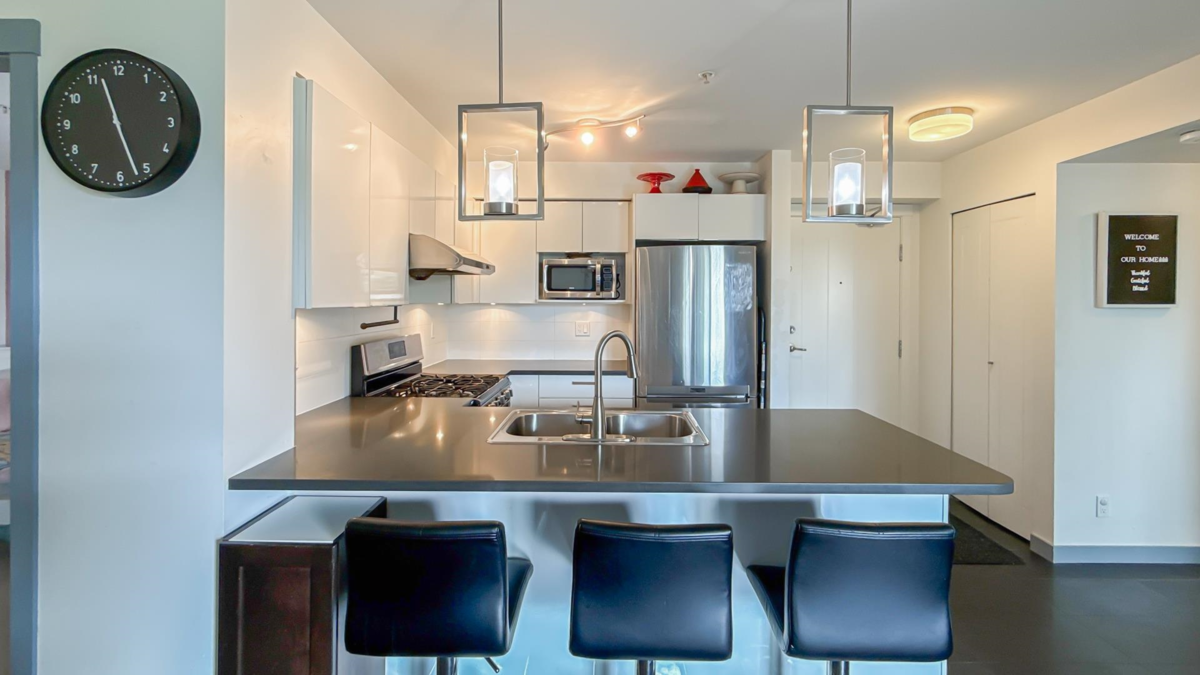 Best Value in Richmond! Perfect for first-time buyers/investors, 2-bedroom, 1-bath condo offers exceptional value, 717 sf of well-planned open living space. Modern finishes throughout: designer cabinetry, quartz countertops, a gas stove, stainless steel appliances, laminate flooring, full-size in-suite laundry & covered balcony overlooking a tranquil courtyard. Residents have access to 6,000+ sf of amenities: gym, full-size badminton court, ping pong area & meeting/change rooms. Steps to The Gardens Agricultural Park with walking trails & natural beauty. Conveniently located near Save-On-Foods, FYI Doctors, Lifelabs, restaurants, florist, pet store, and more. Just minutes to Ironwood Plaza, Hwy 99, Canadian Tire, SilverCity, and transit.