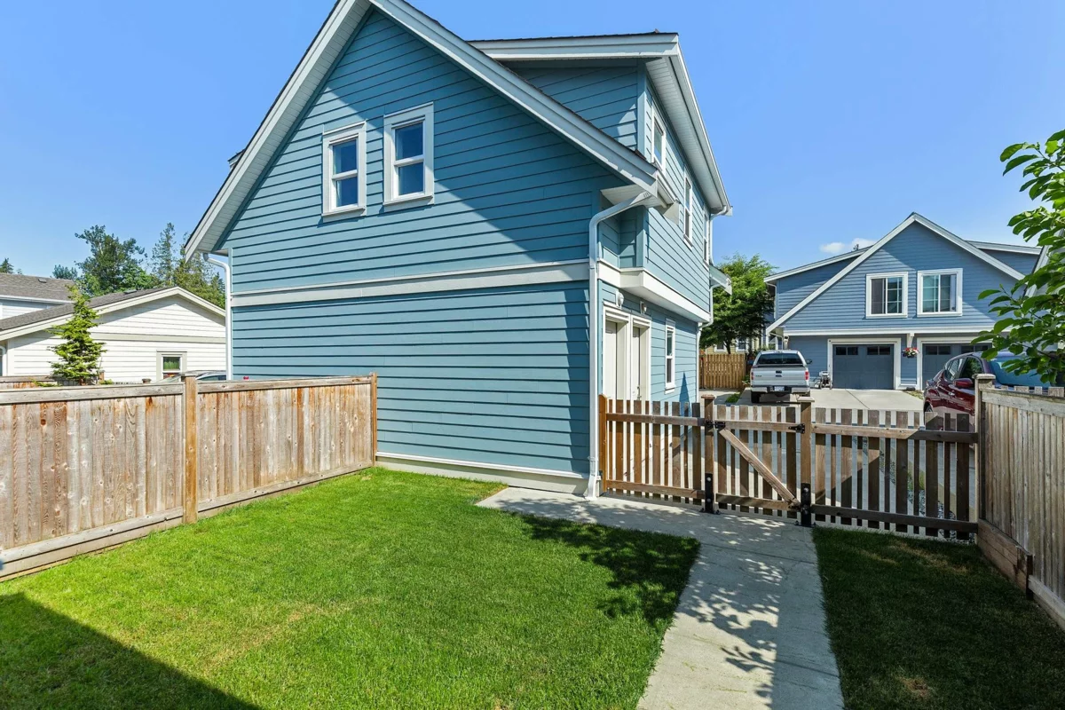 NO STRATA FEES!!! & AC for this HEAT in a family neighbourhood! This beautiful row-home is fully finished for all your needs. Upstairs has 3 Bdrms, laundry & Primary with walk-in closet & ensuite. Main floor has an open concept with some new paint, stone countertops & S/S appliances in kitchen, gas fireplace & built in cabinets in living rm with powder rm. Basement is a fully finished large rec rm with full bathrm. Home could have 5 BEDROOMS!!! The backyard offers a covered deck with fully fenced yard which leads out to the detached garage which has a BONUS living space above! This space is also fully finished with bathrm. Perfect for an at home office, guest suite, bdrm, AIR BNB?! or gym. Located in a quiet no-through subdivision near Cedar Valley Connector, close to schools & shopping.