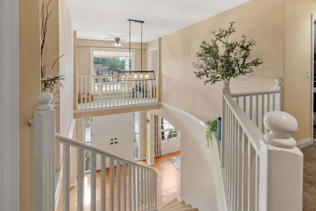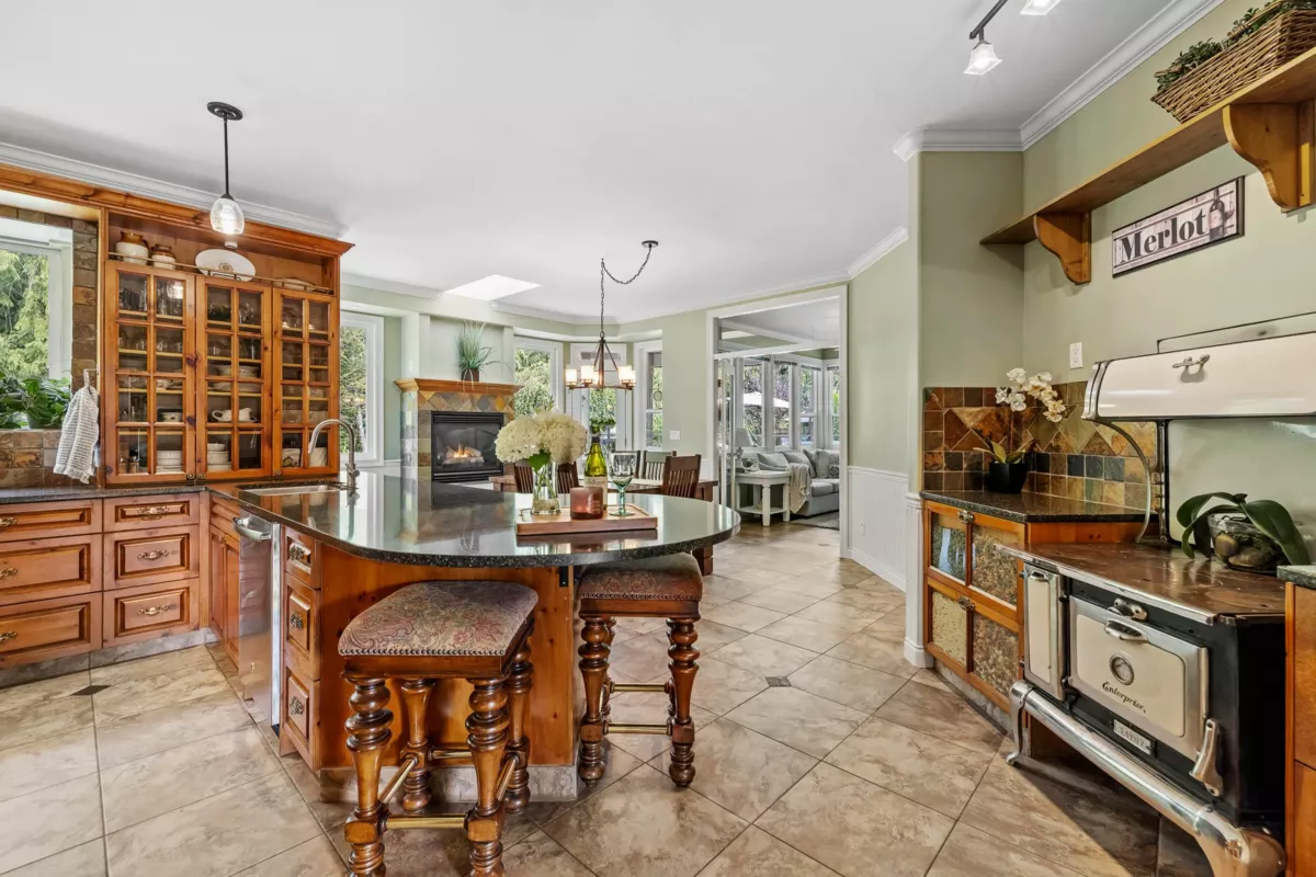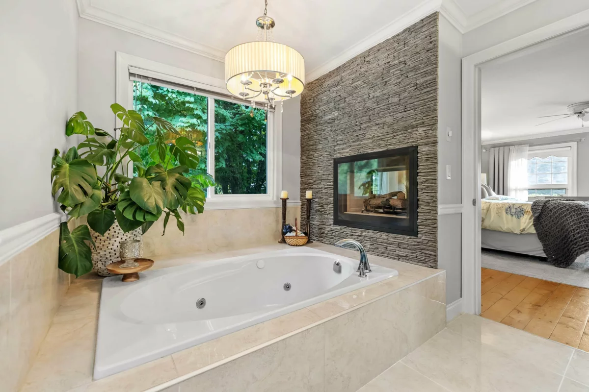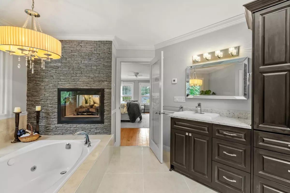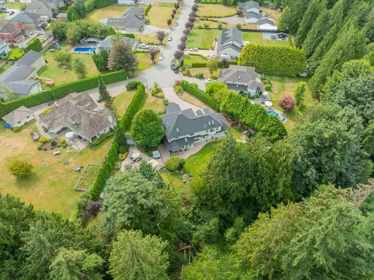 Estate living awaits in this distinguished colonial-style mansion on nearly one acre, backing onto a private greenspace with a creek. A sweeping 80-ft stamped concrete driveway offers space for cars, RVs or boats. The backyard is a private resort with saltwater pool, hot tub and elegant patio. Inside, a striking spiral staircase leads to 4 spacious bedrooms, with the primary suite featuring a two-sided fireplace and spa-like jetted tub. A versatile 5th room can serve as a family room or extra-large bedroom. The garage’s 3rd bay is converted to a gym with potential as a studio suite & has 200 amp service. Downstairs a larger foyer, formal living room & dining room plus chef's kitchen awaits. A rare blend of classic design, luxury and comfort.