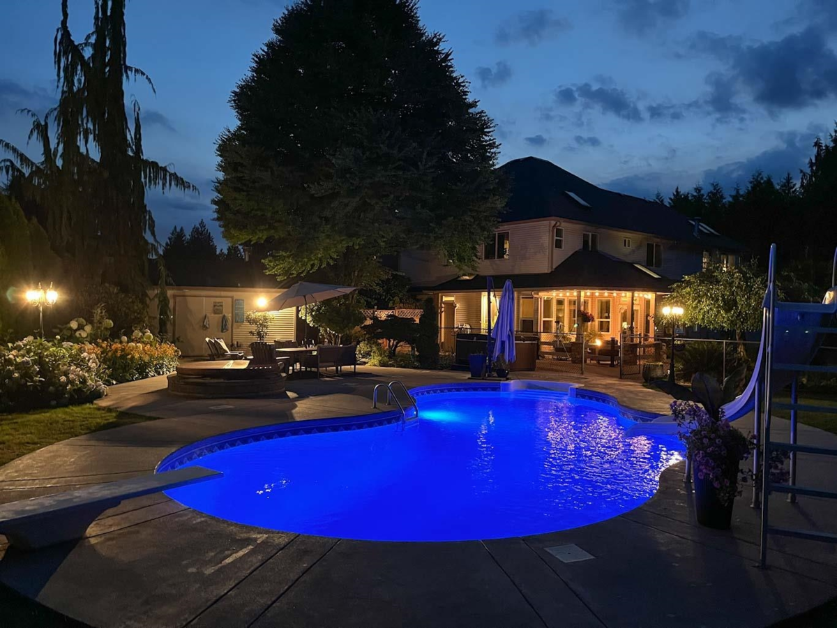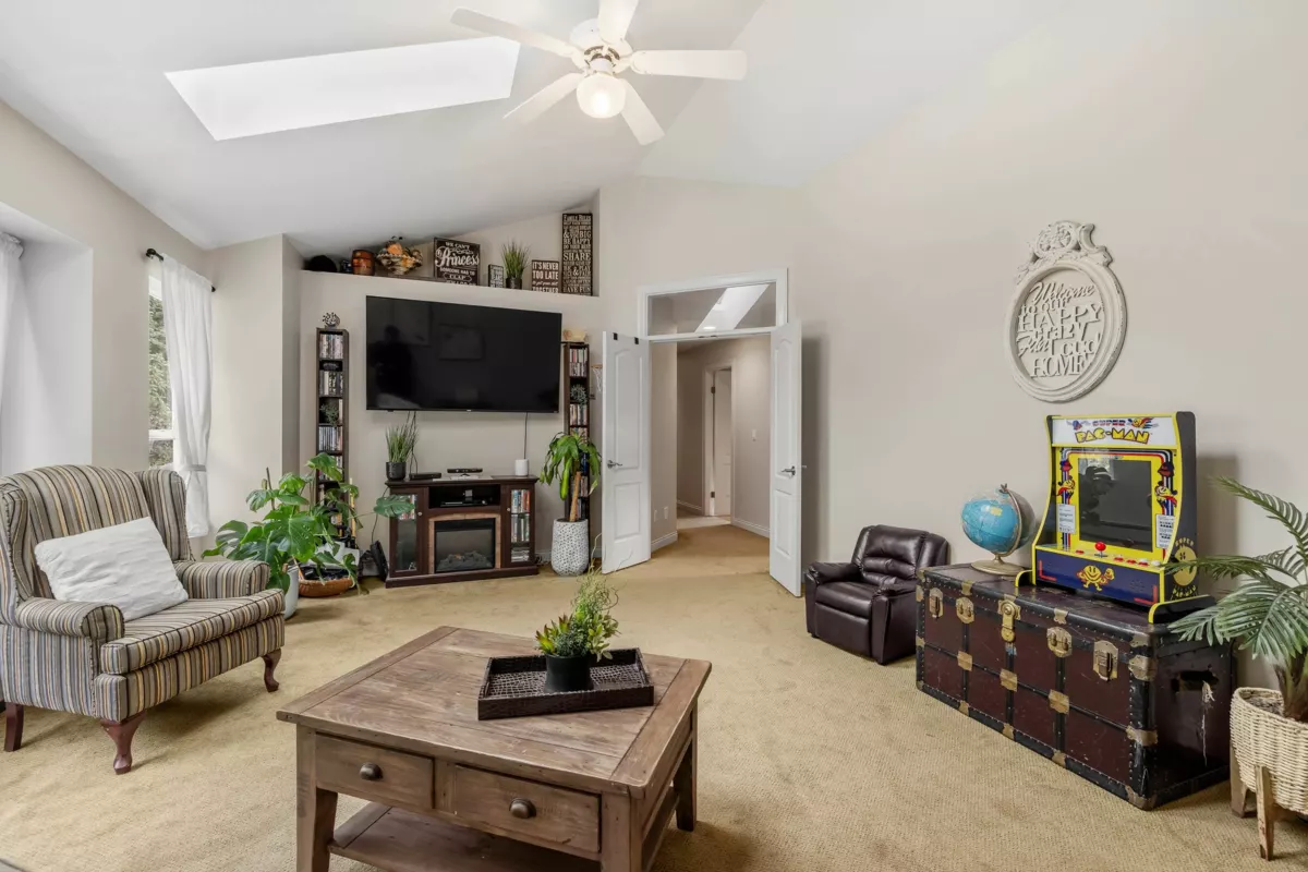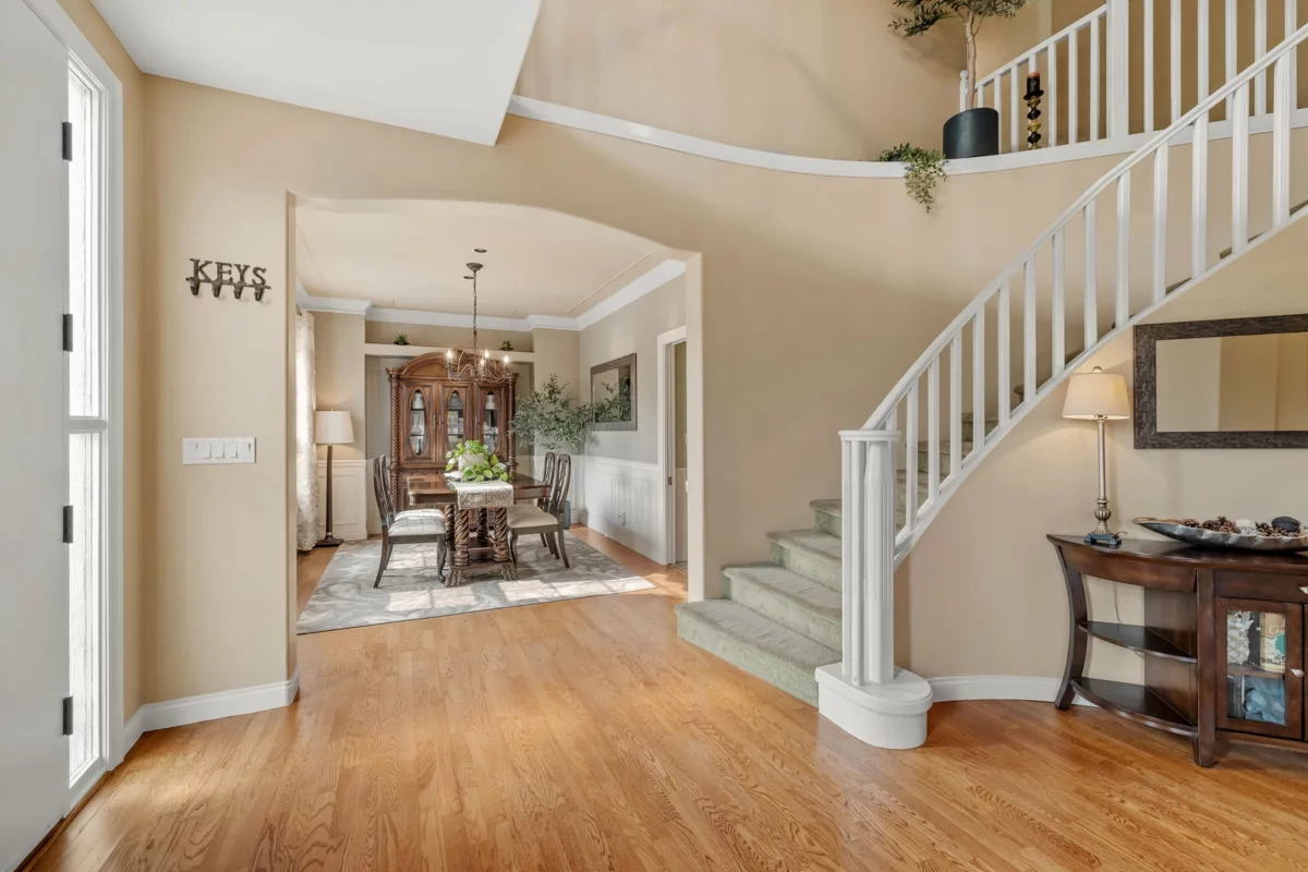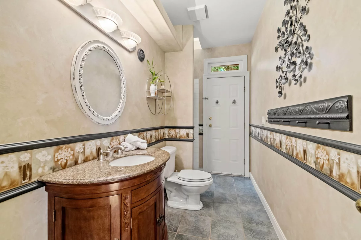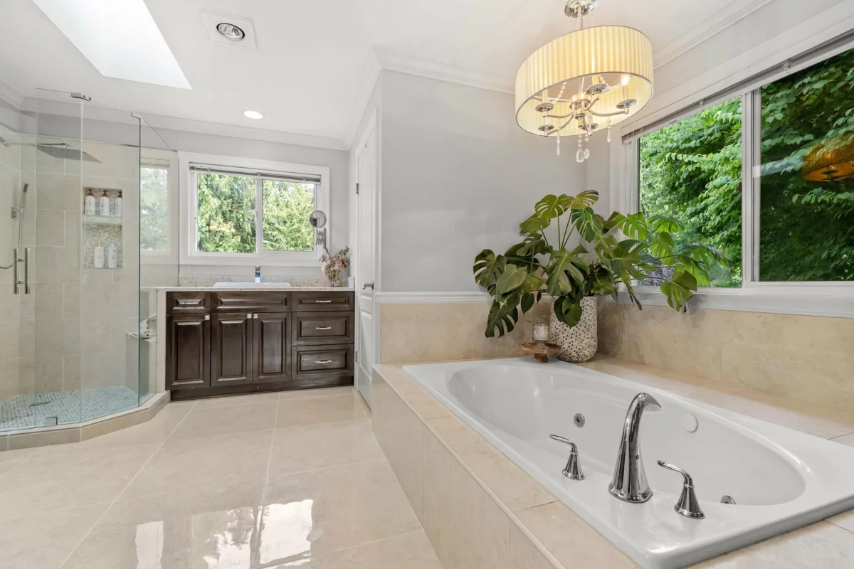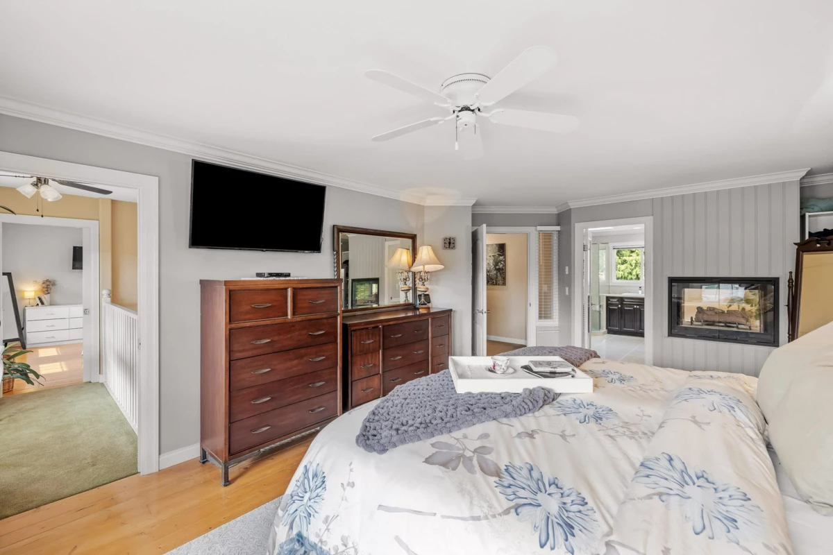 Estate living awaits in this distinguished colonial-style mansion on nearly one acre, backing onto a private greenspace with a creek. A sweeping 80-ft stamped concrete driveway offers space for cars, RVs or boats. The backyard is a private resort with saltwater pool, hot tub and elegant patio. Inside, a striking spiral staircase leads to 4 spacious bedrooms, with the primary suite featuring a two-sided fireplace and spa-like jetted tub. A versatile 5th room can serve as a family room or extra-large bedroom. The garage’s 3rd bay is converted to a gym with potential as a studio suite & has 200 amp service. Downstairs a larger foyer, formal living room & dining room plus chef's kitchen awaits. A rare blend of classic design, luxury and comfort.