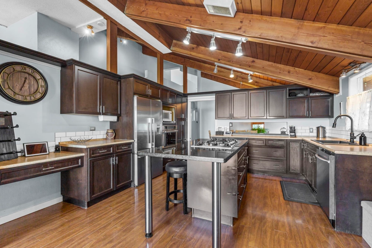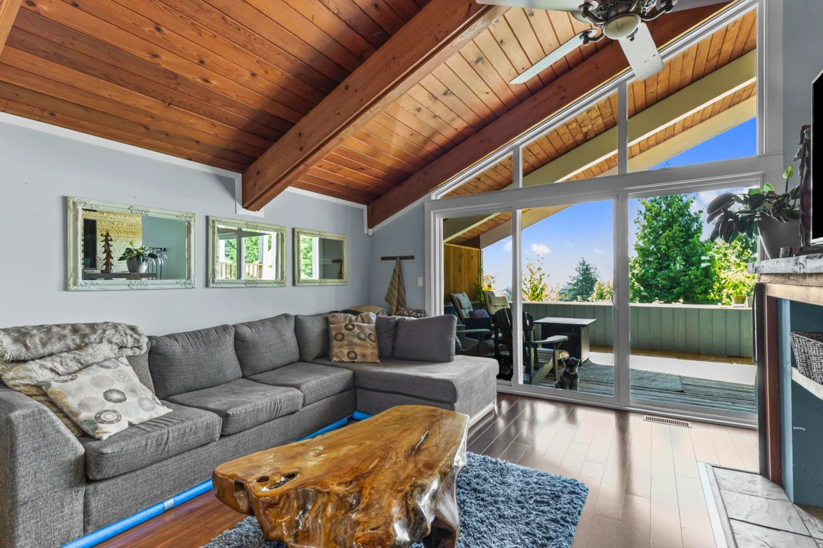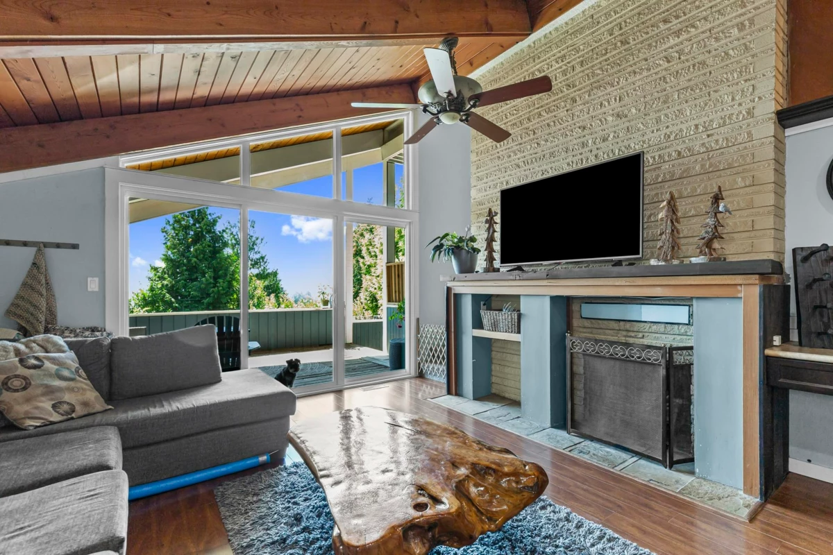 AMAZING & UNIQUE HOME!! Over 4000 sqft of living! Views of the Valley and Mount Baker! NEW WINDOWS! Gorgeous vaulted exposed beam wood ceilings, open concept living on the mainfloor. Chef's style Kitchen and living area with oversized sliders to the south facing covered deck. 2way fireplace in Living and family rooms. Upstairs features a separate living area, 3peice bath, and 2 spacious bedrooms. HOT WATER ON DEMAND! Downstairs is a completely separate self contained 3 bedroom suite. Great multigenerational home, or an amazing mortgage helper with a semi-private patio area on the side. Beautiful gardens. Oversized driveway with room for the RV. FANTASTIC LOCATION! Walk to Centennial Park, the Leisure Centre, so many amenites!