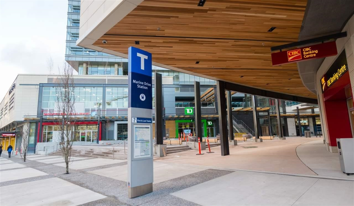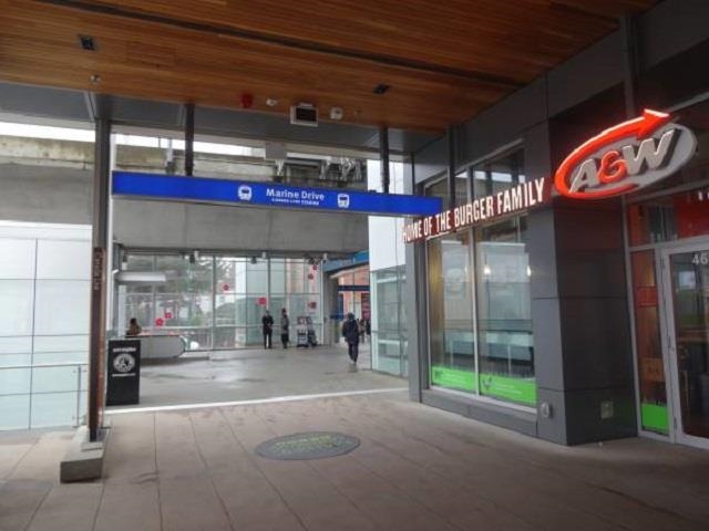 Very rare find! South facing 2 bedrooms corner unit with 270 degrees panoramic STUNNING view of Water, City & Mountains,93SF balcony. Conveniently located above Marine Drive Skytrain Station, T&T Supermarket,Shoppers,Winners,Starbucks,A&W,Subway,Restauranta,Cineplex Theatre, Fitness World, Liquor Store, Pub and much more. Stainless Steel appliances with paneled fridge & dishwasher, granite counter top, soft-closing cabinetry. 1 parking on level P4 & locker. Management fee includes Heating. Very secured and well maintained building. Good long term tenant now on month-to-month lease at $3040/month without locker. Churchill Secondary catchment. MUST SEE! Please allow min 24 hours to tenant for showing requests. Measurements from floor plan.