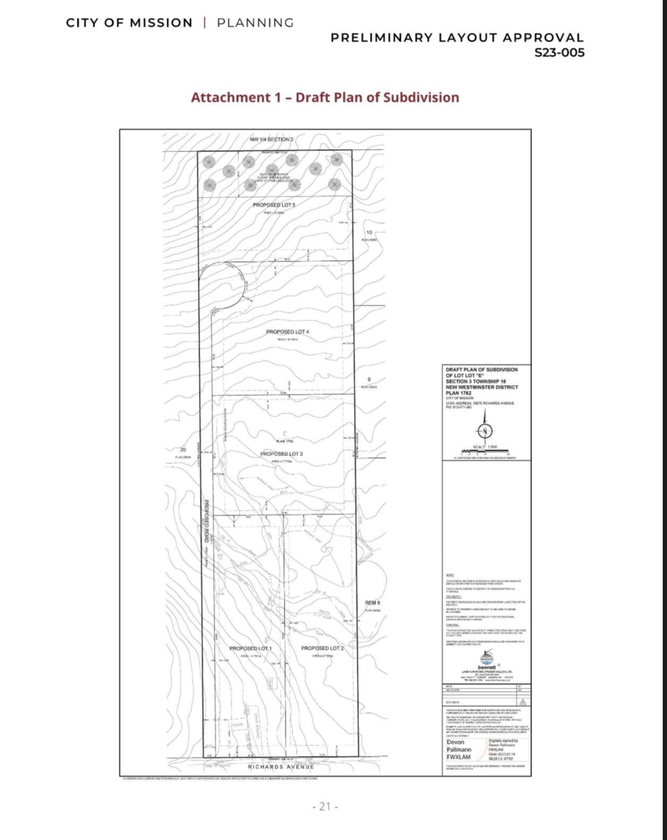 MOTIVATED SELLER! Prime Mission development opportunity! 9.8-acre property with Preliminary Layout Approval (PLA) in place for a 5-lot subdivision, offering builders and investors a rare chance to move quickly on a shovel-ready project. Located in a quiet rural setting yet close to schools, shopping, and commuter routes. Land with gentle slopes, ideal for estate-style homes. DFO has approved the repositioning of a culvert on the property. Buy today and take advantage of the development momentum in Mission—perfect for families, builders, or land investors. Properties with PLA are hard to find—don’t miss this fast-moving opportunity! DFO has approved the repositioning of a culvert on the property, a major milestone that any buyer will not have to worry about.