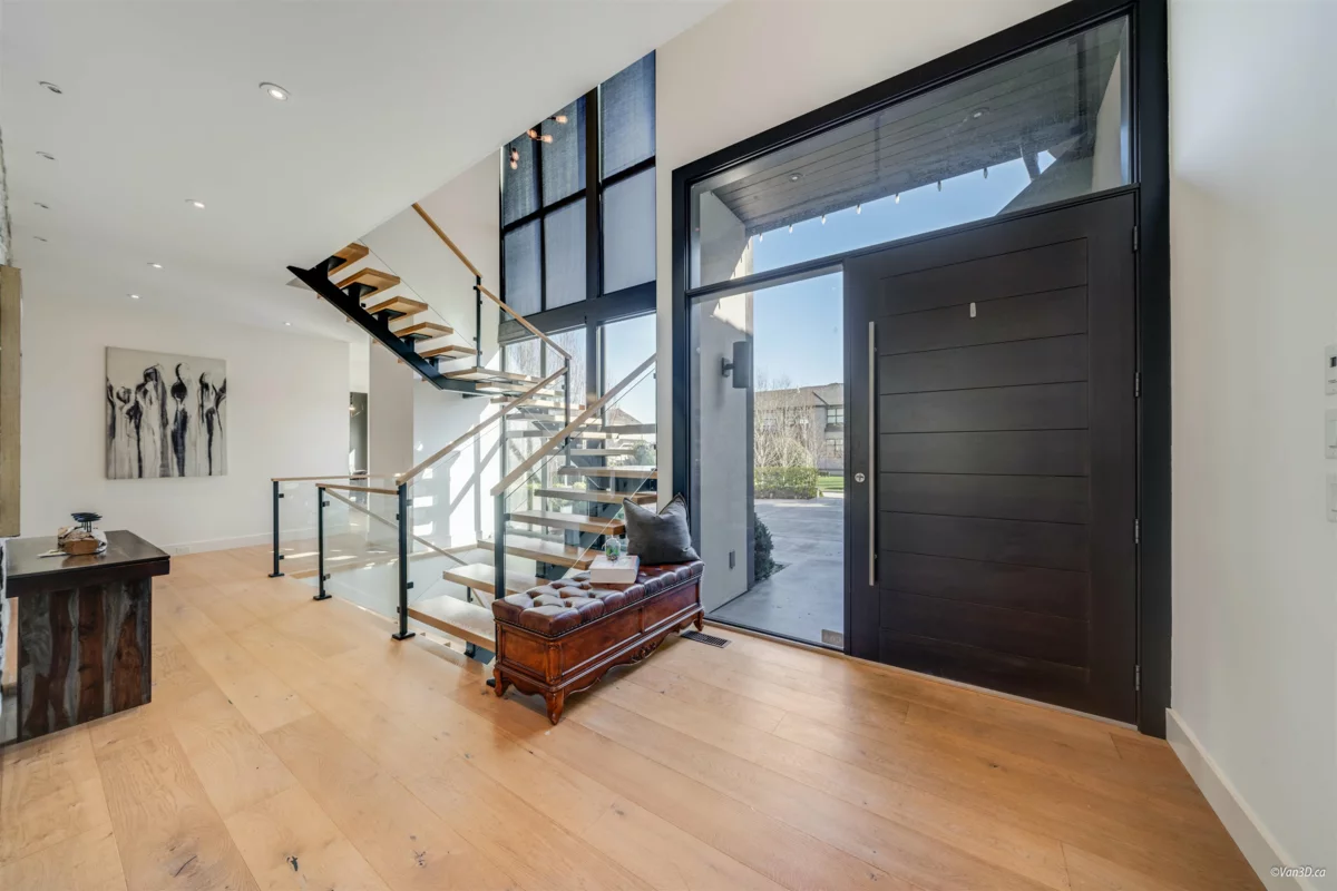 Located in Morgan Creek, this modern Cape Cod home blends luxury with nature, surrounded by greenspace, a golf course, and mountain views. Designed by Norm Friesen and built by M.E.C. Urban Developments, with interiors by Done to the Nines, this 6,129 sq. ft. custom home offers 6 beds and premium finishes, including hardwood, quartz, stone, and stucco. Features include soaring ceilings, a floating staircase, a great room, a main-floor primary suite, a wet bar, and a triple garage. The professionally landscaped yard boasts multi-tiered decks, patios, and lounging areas, backing onto tranquil Wills Brook with a sunlit western backyard. Ideally located near Morgan Creek Elementary and Grandview Heights Secondary.