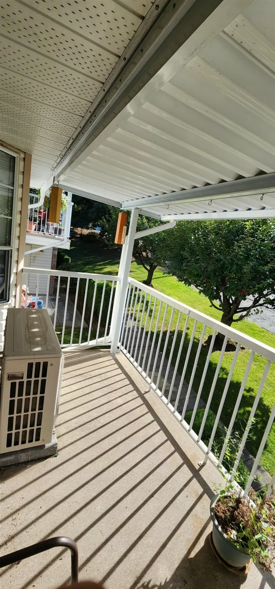 Rare opportunity for this 2 bed, 2 bath upper-level townhouse in central downtown Abbotsford. Private front & back patios with parking at each! Bright, open layout with newer floors, fresh paint, and a new heat pump for year-round comfort. Primary bedroom features a fully upgraded 3-piece ensuite with walk-in shower. Large 4-piece main bath. Storage room. Quiet, well-maintained 55+ community with amenities room,guest suite and hobby shop. Lots of visitor parking and unit comes with two parking spots, one covered. It's just steps to shopping, restaurants, parks, and transit. You need to see it to appreciate the convenience – this one has it all!