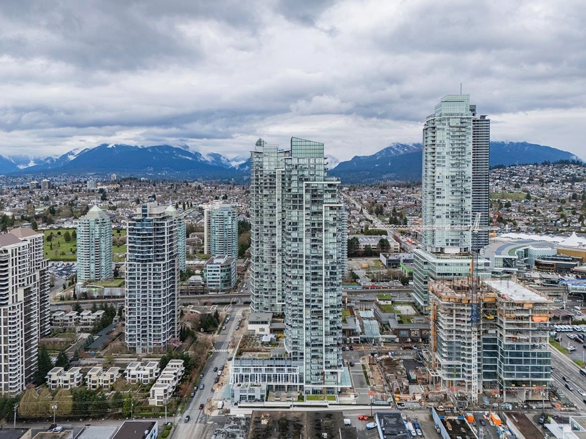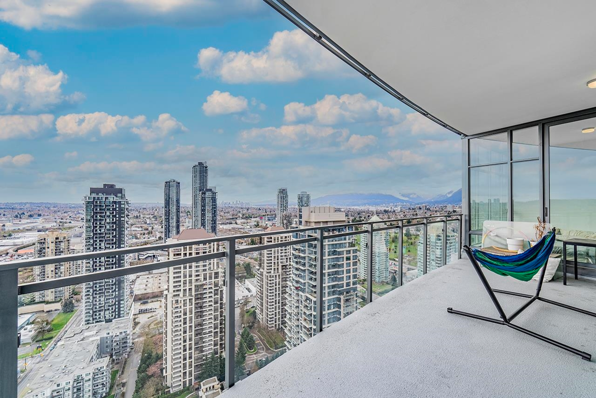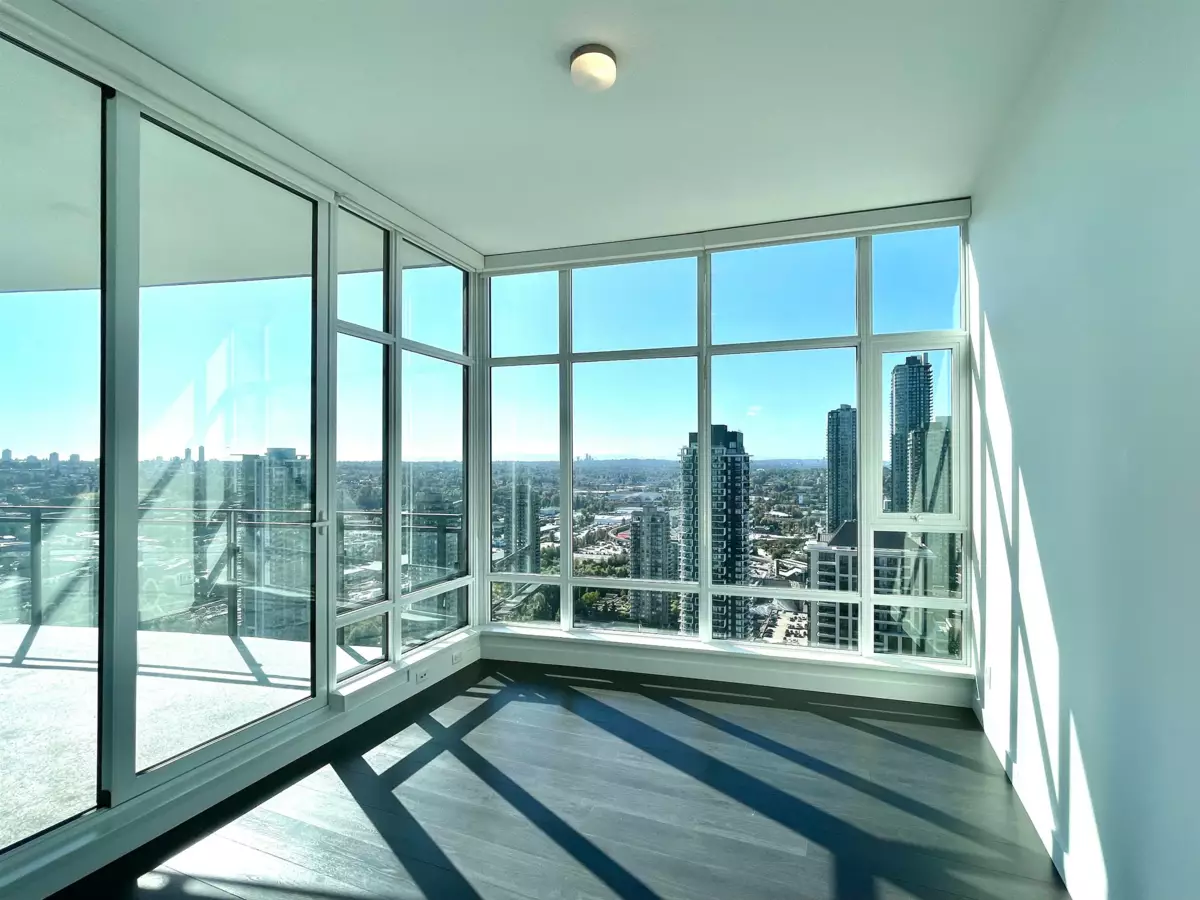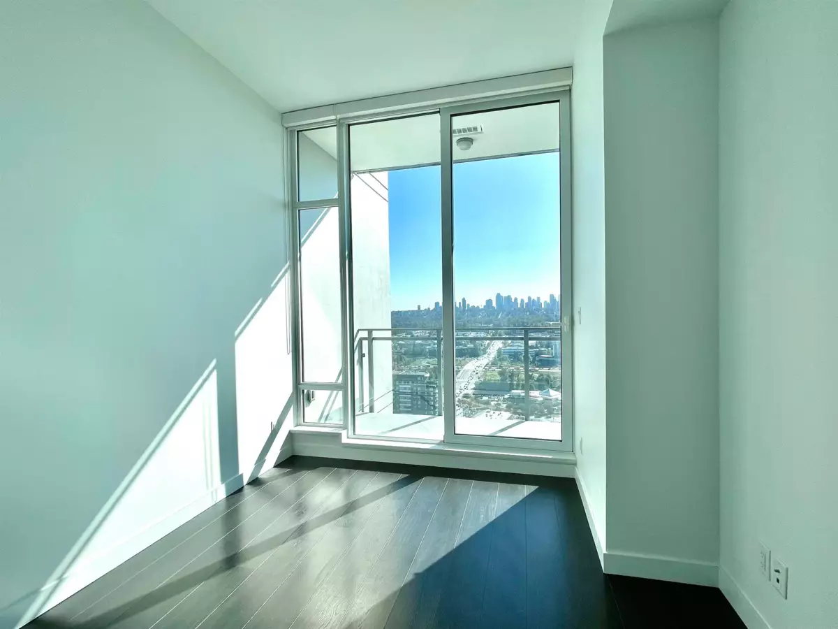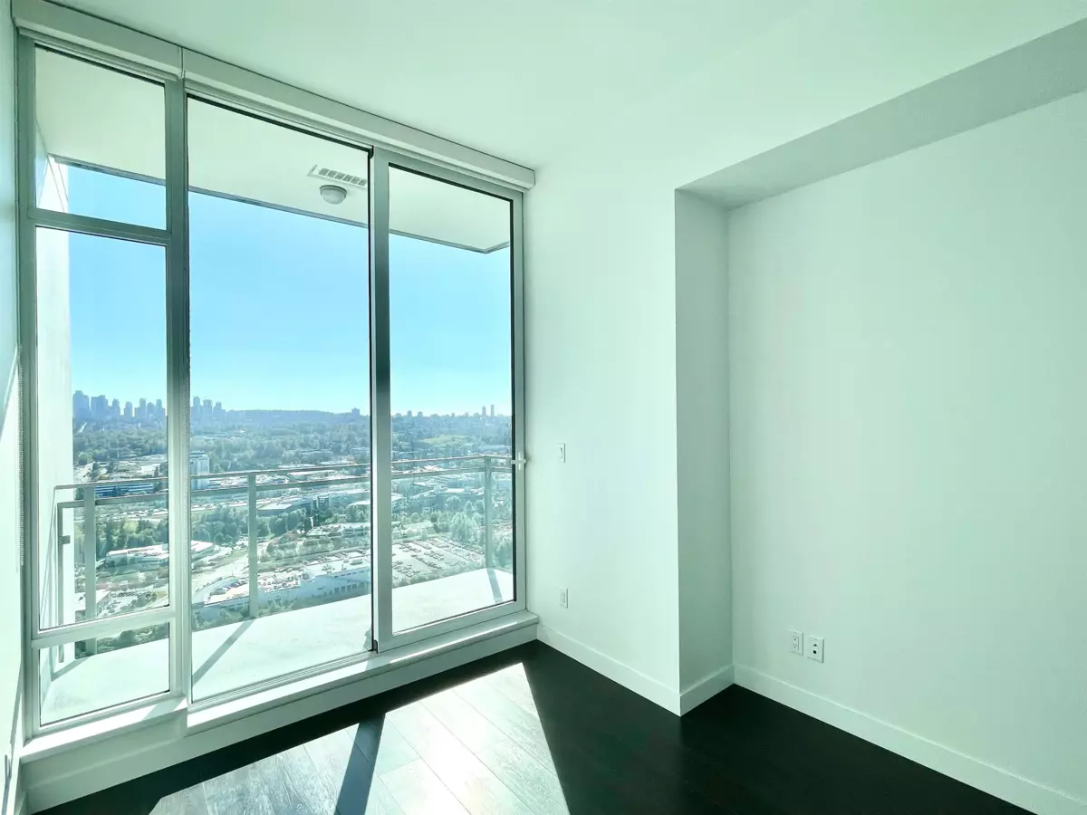 SOLO DISTRICT TOWER 3 built by Appia Development. Concrete highrise, corner unit facing south and west. 2 bedrooms, 963sf, 2 bathrooms, AC, 2 balconies with city, downtown, north Vancouver mountain view, functional layout, high ceiling 11' throughout. Includes 1 parking, and 1 storage locker. Spacious gourmet kitchen with luxious appliances, wood flooring throughout. Great facilities and concierge service. Walking distance to Brentwood mall, skytrain station, bus loop, cinema, supermarket, restaurants, bank, and park.