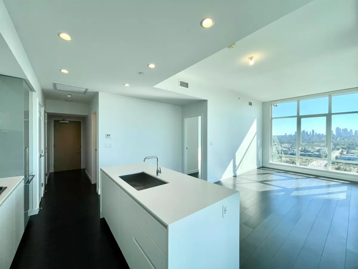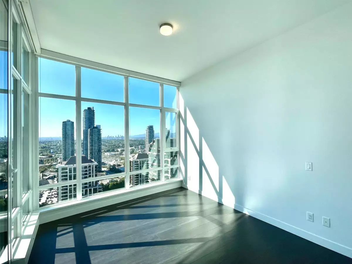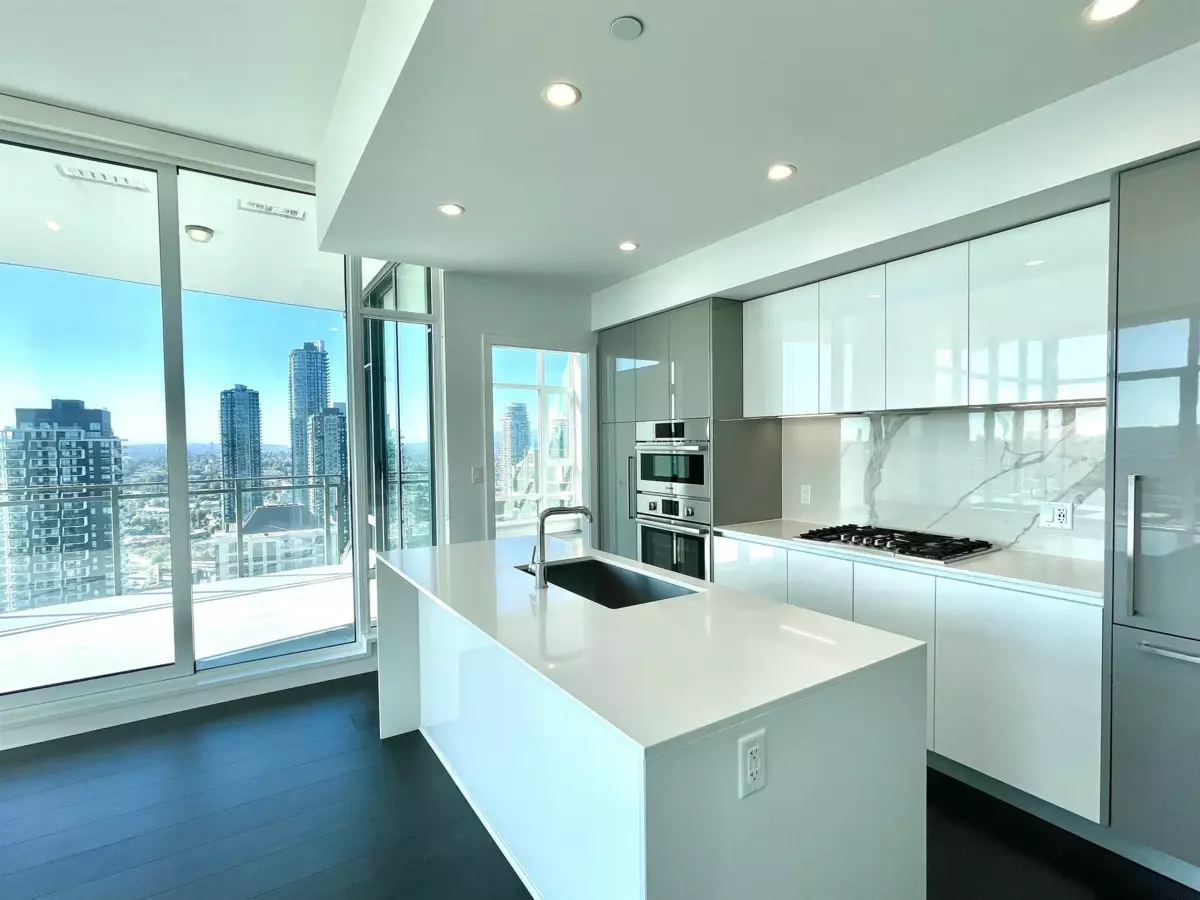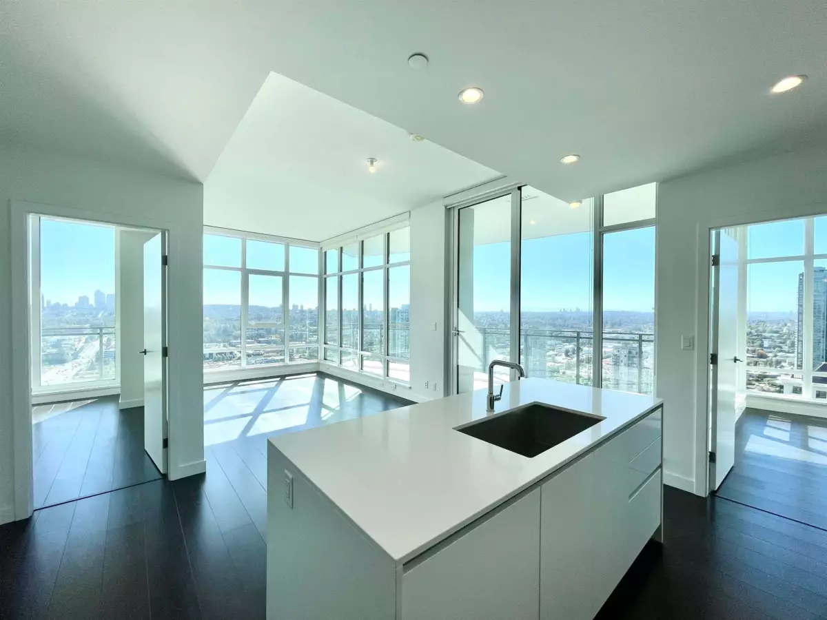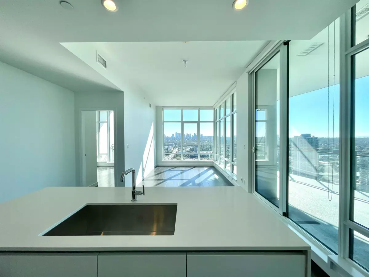SOLO DISTRICT TOWER 3 built by Appia Development. Concrete highrise, corner unit facing south and west. 2 bedrooms, 963sf, 2 bathrooms, AC, 2 balconies with city, downtown, north Vancouver mountain view, functional layout, high ceiling 11' throughout. Includes 1 parking, and 1 storage locker. Spacious gourmet kitchen with luxious appliances, wood flooring throughout. Great facilities and concierge service. Walking distance to Brentwood mall, skytrain station, bus loop, cinema, supermarket, restaurants, bank, and park.