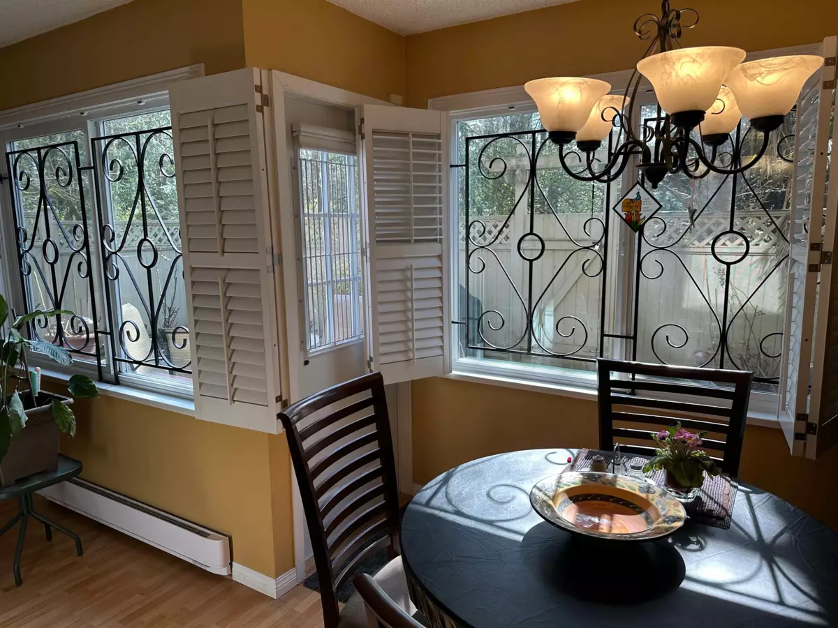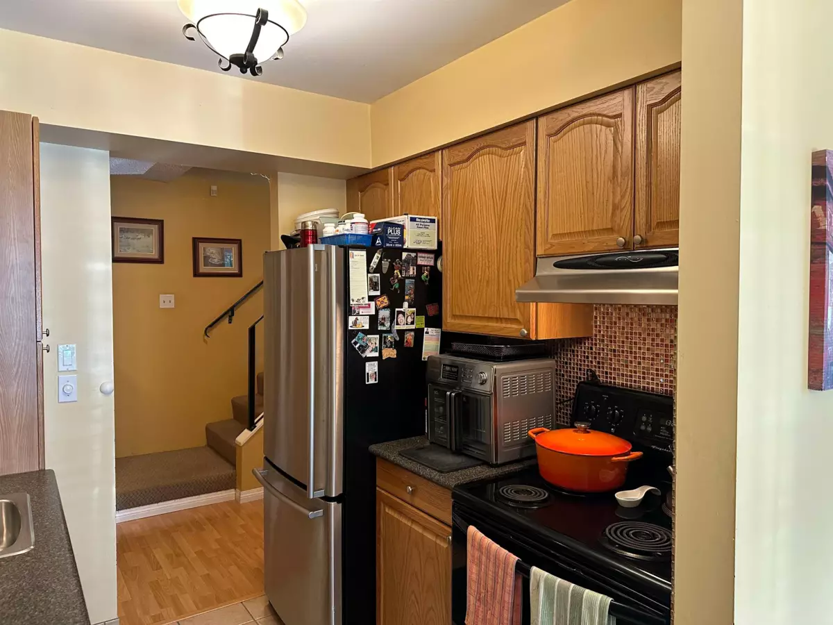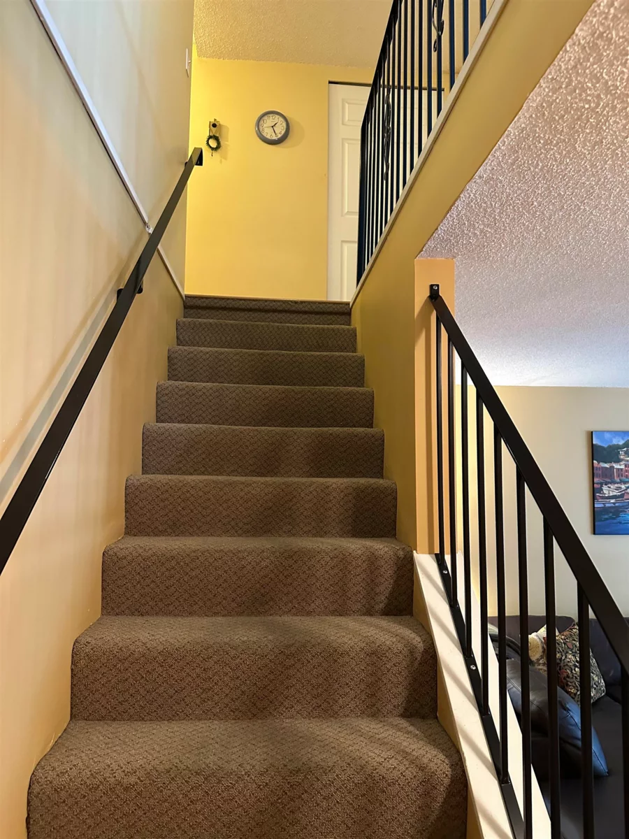 Start the new year in this wonderful family home.You will love living here. Fashionably decorated using earth tones and contemporary styling,this end unit with attached carport is one of the most desirable in the complex.List of upgrades includes newer windows,custom shutters, security system, shelving, closet organizers, electric fireplace,iron stair railings,front and back metal entry doors and more.The huge private fenced and landscaped patio with stamped concrete tiles is complimented by the surrounding green space making it a private family oasis ideal for relaxing and socializing on warm sunny days.Conveniences such as a neighbourhood strip mall,community centre,K-7 school,trails,parks and transit are all steps away.Join us for our. Easy to show by appointment.
