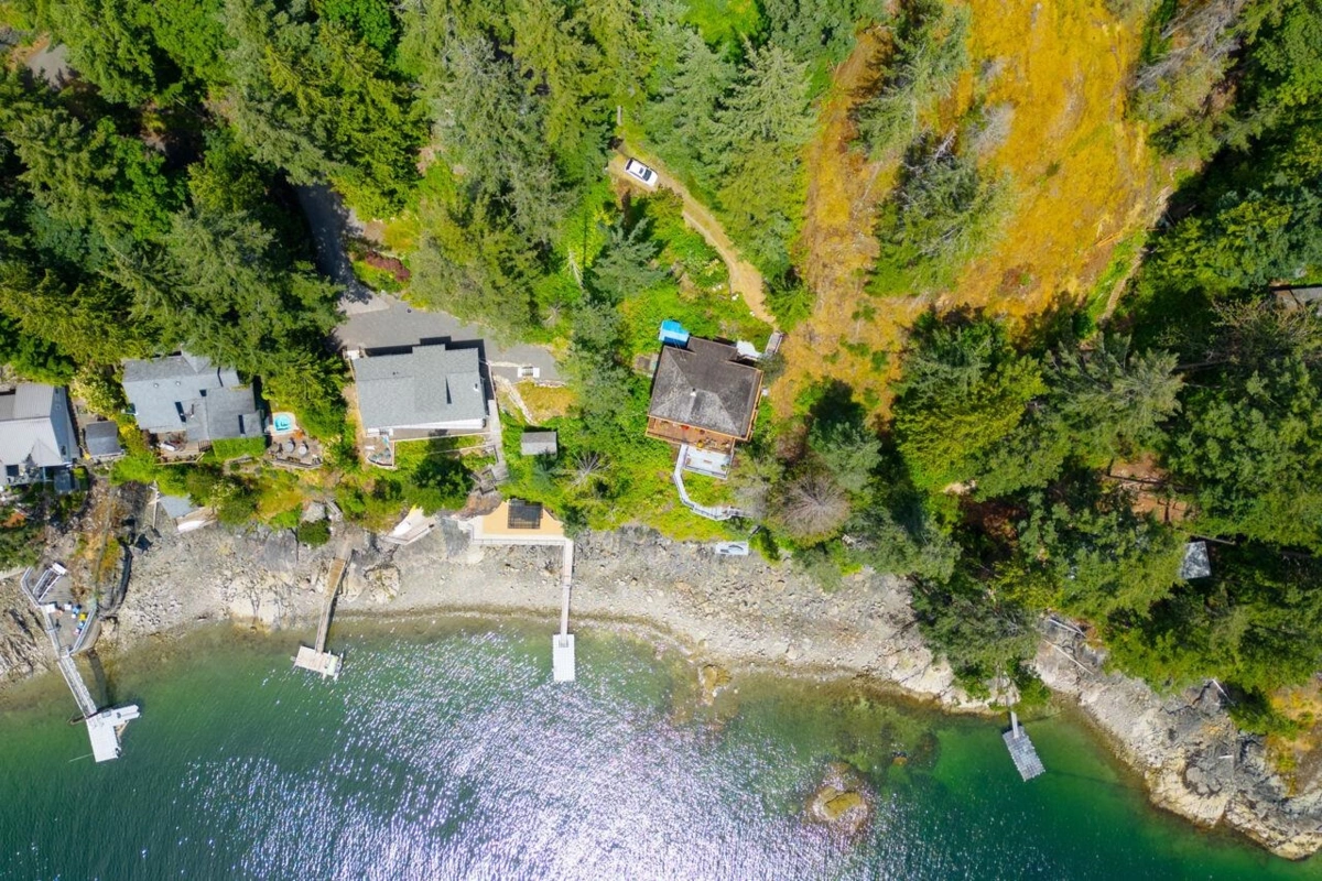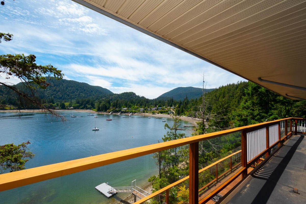 This waterfront home sits overlooking Deep Bay - one of Bowen's most popular locations. 0.67 acres, with steps down to the water's edge below, places to put your paddle board, and plenty of privacy. Inside features an open plan on the main, with wood paneling throughout for a comfy and cozy feeling centered around a beautiful fireplace. Upstairs consists of 3 bedrooms. Soak up all day sun from multiple levels of wrap-around decks, and whale-watch from the comfort of your own home. Below features an covered yet open air area for woodworking and more. Moments away from Snug Cove and the ferry.