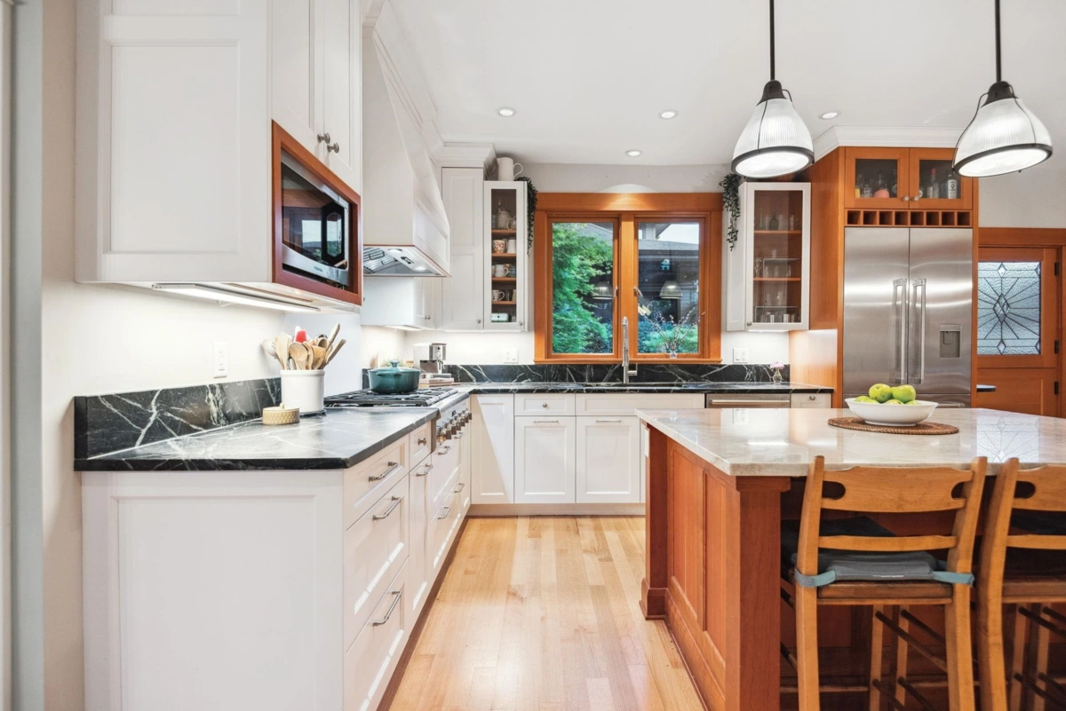 Welcome to the “Harrison House” (circa 1912)—a rare chance to own a piece of Vancouver’s architectural legacy. Listed on the City’s Heritage Inventory, this 3,571 sq ft stunning home blends timeless charm with modern upgrades. Featuring stained glass, fir floors, a grand foyer, original wainscotting & an open staircase. Substantially renovated in 2016 with a luxurious design that feels both modern & traditional. Enjoy peekaboo views of the water & downtown from the spacious front verandah. Four bedrooms up, with additional space below for flexible living or a guest suite. Workshop + unfinished Attic space. 1 car detached garage at rear with. Quiet street in a central, family-friendly, neighbourhood. Unique strata lot with a separately owned infill in back.