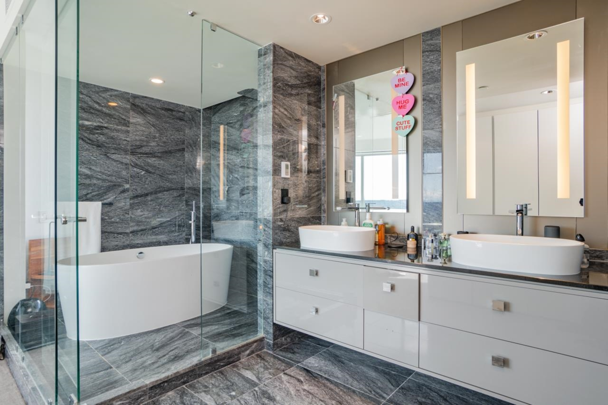 Stunning 180 degree Unimpeded VIEWS of Ocean, English Bay, North-Shore Mountains, Lions Gate Bridge & Stanley Park, Coal Harbour. Designed by Arthur Erickson, sitting in the heart of Downtown Vancouver. This luxurious 2 bdrms & 3 bathrooms (all ensuites) plus den feature 1,167 sqft living spaces, Italian kitchen with Gaggenau appliances, wine fridge, steam oven. Upgraded with Italian closets, art lighting, wall paper. Enjoy the convenience of A/C, and smart home technology. World class amenities: Drai's pool bar & night club, Mott 32 fine dining Chinese restaurant,Spa, Tecnogym fitness Centre, Rolls Royce hotel car services and 24/7 Concierge. 1 PARKING and 1 locker. Absolutely AMAZING!