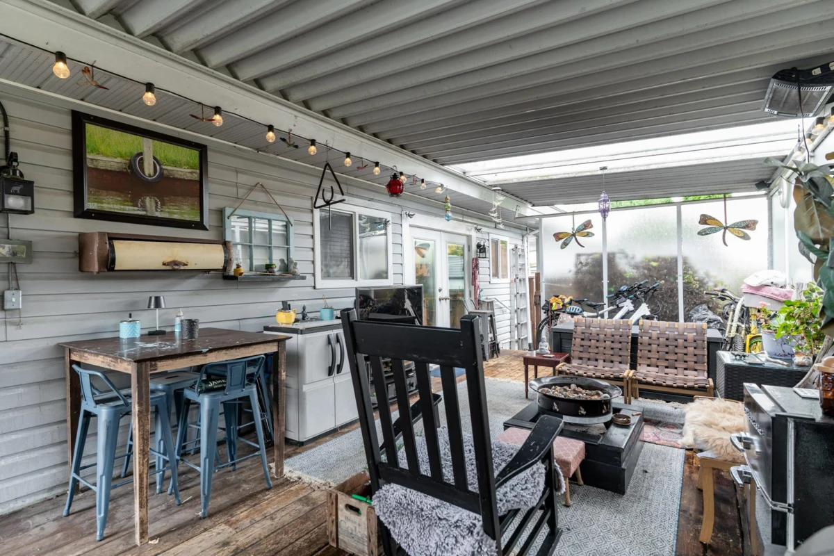 Discover this charming & unique 2-bedroom rancher-style ½ duplex tucked away in a quiet, family-friendly neighbourhood! The bright living room features a large picture window that fills the home with natural light. Enjoy the stunning white kitchen with a granite island & built-in wine rack, elegant pendant lighting, S/S appliances, and a beautiful backsplash. The updated spa-like bathroom impresses with marble counters & a gorgeous glass shower. Step out to your spacious covered deck with hot tub, perfect for relaxing or entertaining. The fully fenced 4,057 sq. ft. yard includes a powered shed, 200 amp service, and 30 amp RV hookup. A true blend of comfort, luxury & functionality—welcome home!