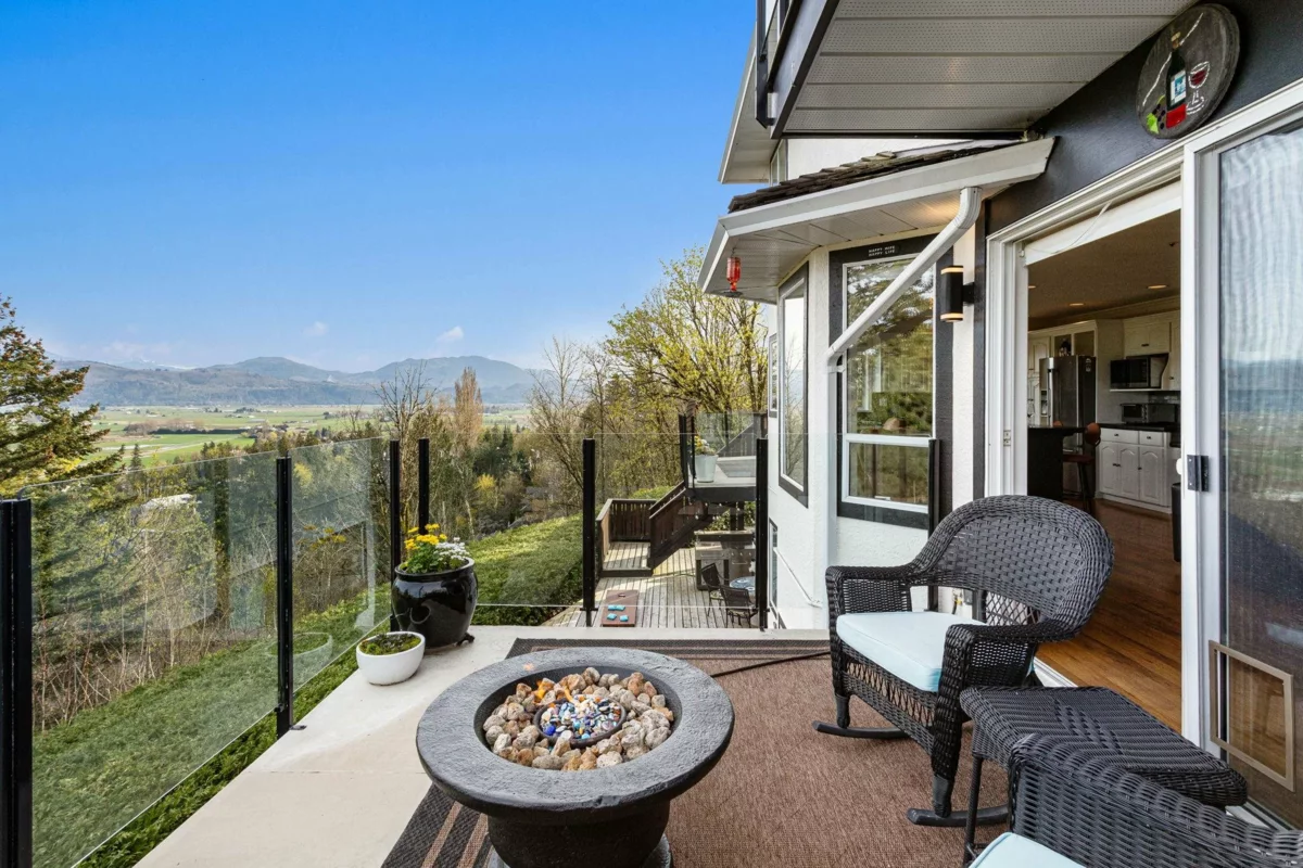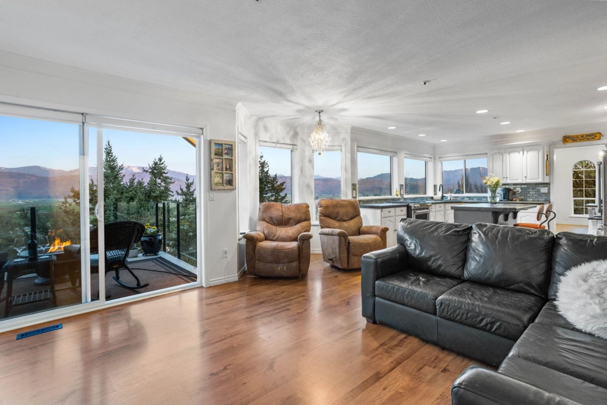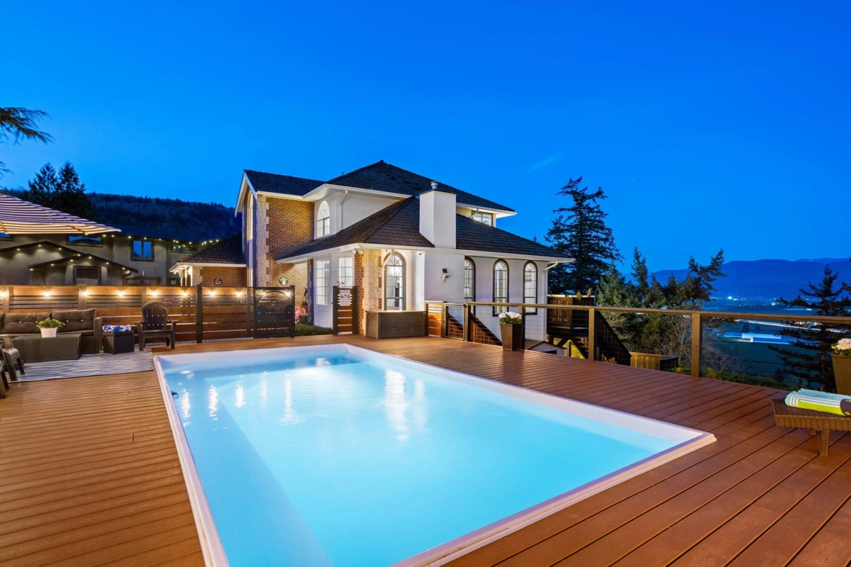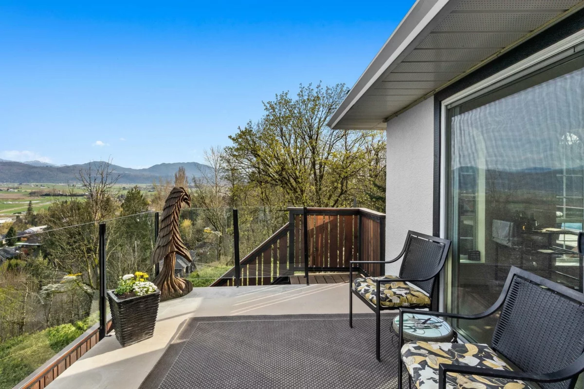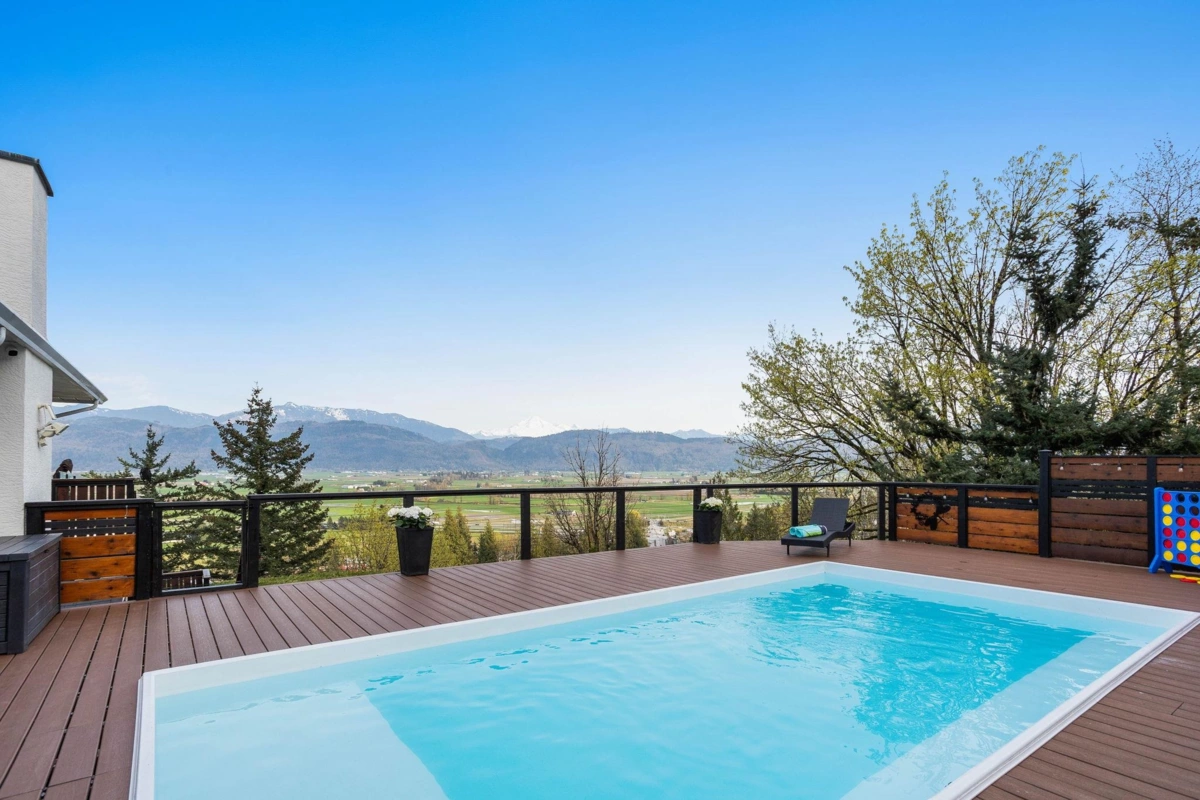 Open House Nov 29th 2-4PM. An exceptional opportunity in East Abbotsford. Situated on a quiet private road with its own driveway, this 39,000+ sq. ft. estate lot offers a rare combination of privacy, panoramic protected views, and future potential. The property’s size, setting, and natural elevation create a one-of-a-kind vantage point, with long-term value whether held for development or used to build a custom dream estate. The existing 3,400 sq. ft. home features 4 bedrooms plus a den, 3.5 baths, vaulted ceilings, multiple decks and patios, and a newer 24-foot heated steel pool. Comfortable and functional for family living or rental use while planning your vision. Large parcels like this, offering such a unique mix of seclusion, scenery, and flexibility, are seldom available.