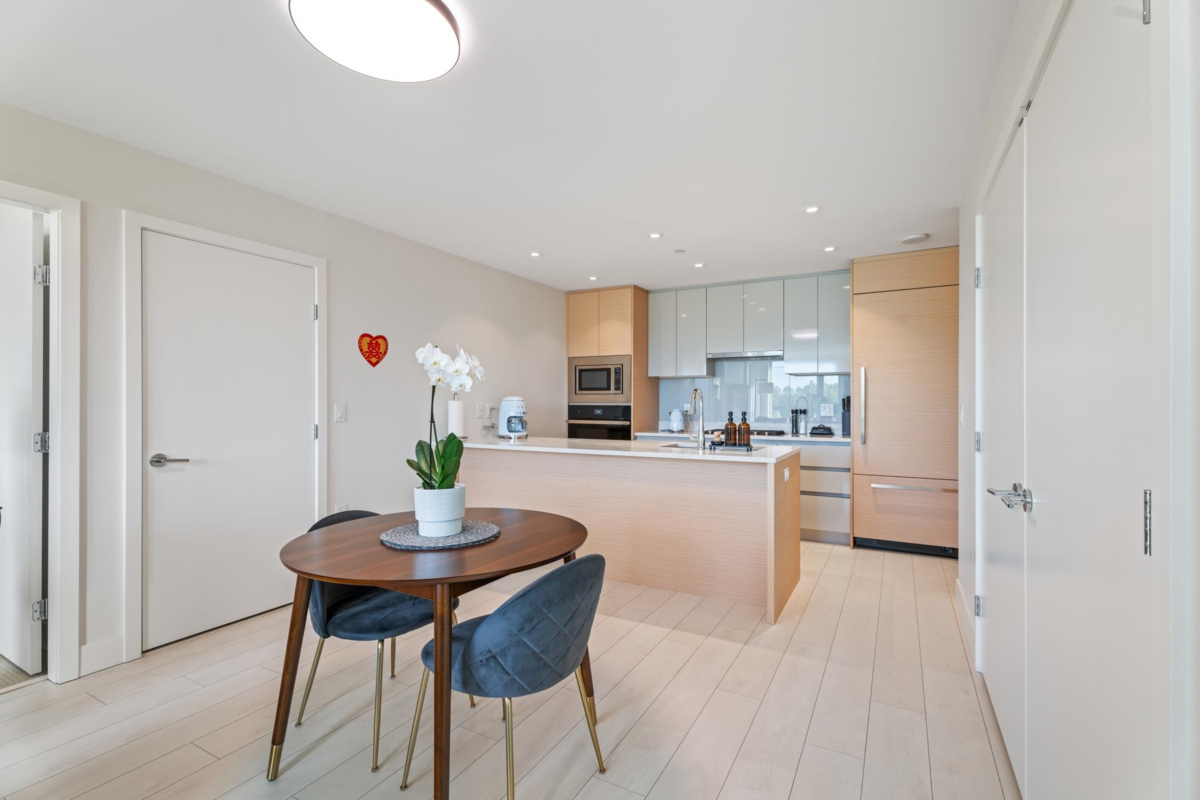 Welcome to Avalon 3 by Wesgroup in the heart of the thriving River District! This bright and spacious 2 Bed + Den, 2 Bath home offers a functional 945 SF layout with contemporary finishes. Enjoy wide-plank laminate flooring, premium Jenn-Air appliances, gas range, quartz counters, under-cabinet lighting, and in-suite laundry. South-facing exposure fills the space with natural light, while central A/C & heating keep you comfortable year-round. Residents enjoy exceptional amenities—rooftop pool & hot tub, fully equipped gym, concierge, and a 20,000 SF courtyard. Steps to groceries, banks, dining, shops, and transit with quick access to Metrotown. Includes 1 secure parking. A stylish home in a vibrant, walkable community!