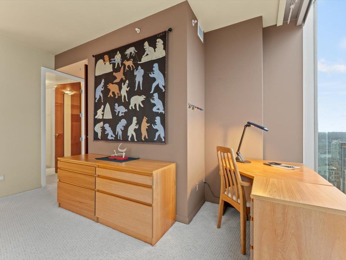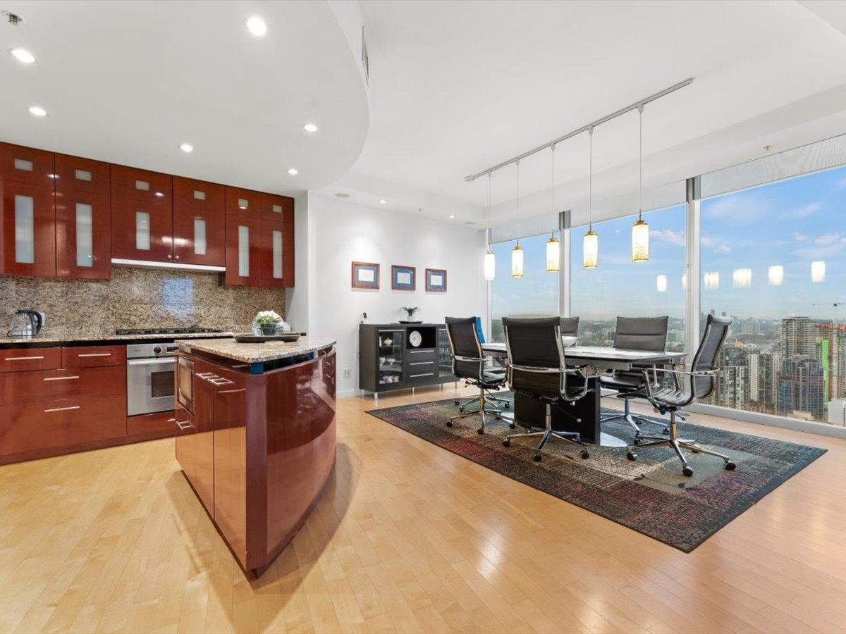 Welcome to The One Wall Centre, an architectural landmark, winner of the Emporis Skyscraper Award (2001).This 2bedroom, 2bathroom residence with 1,530 sq/ft of refined living space, showcasing breathtaking panoramic views of English Bay, Kitsilano, and extending all the way to Vancouver Island. Floor-to-ceiling windows bathe the interior in natural light.The primary suite is complemented by a luxurious ensuite featuring dual vanities, a jetted soaking tub, and a separate glass-enclosed shower. The kitchen is appointed with granite countertops, a central island, and premium Bosch and Sub-Zero appliances, Residents of The One Wall Centre enjoy access to the Sheraton Hotel’s world-class amenities and the assurance of a full-time concierge providing the highest standard of service and security