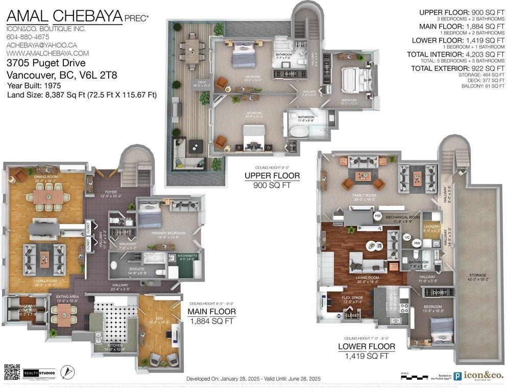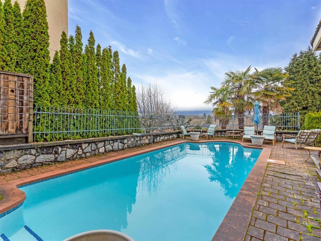 VIEW, VIEW, VIEW Expansive city and mountain views from one of the largest lots (8420sq ft) on Puget Drive. Build your dream home of over 5000 sq ft,or family compound, including a laneway with a view, or an executive duplex, or refresh the existing Mediterranean style home that sits upon this 73’ wide view lot. With a total of five bedrooms, including a one bedroom suite and a main floor Granny Flat, this home is set up for family living. Beautiful pool and hot tub with large terraces and gardens that include fig, apple and plum trees complete the feeling of living in your private resort. Showing by appointments, please call for your private showing