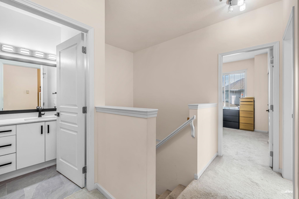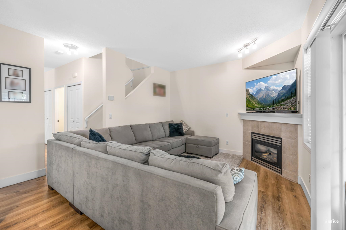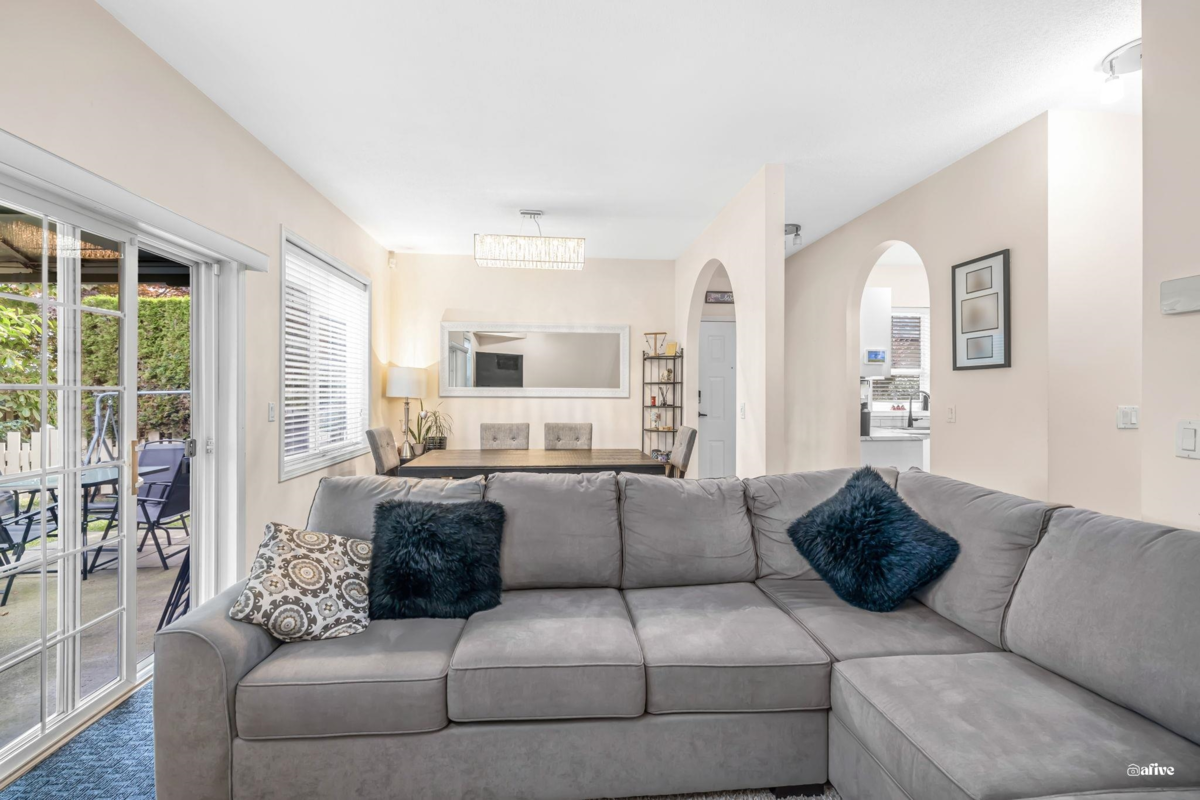 LEGENDS! Warm & Inviting End Unit Townhome! This 2 storey corner unit features a double side by side garage and a private fenced backyard perfect for family living. Step inside to a bright open layout with large windows, updated kitchen, new blinds and easy garage access. The cozy living and dining areas open to a spacious patio and yard ideal for relaxing or entertaining. Upstairs offers 3 comfortable bedrooms including a generous primary with walk in closet and spa inspired 5 piece ensuite. Updated baths, new flooring, carpet, paint, hot water tank and roof. Affordable strata fees and close to schools, shopping and the new SkyTrain.