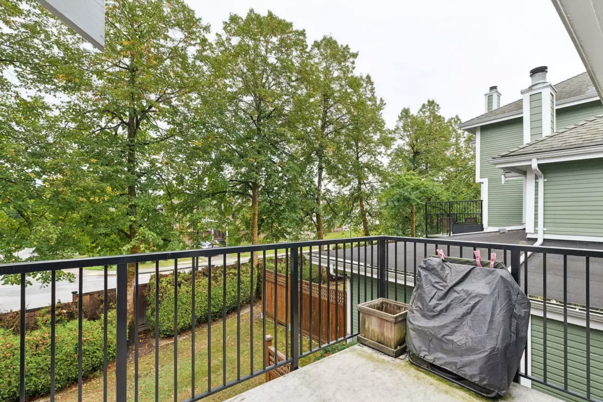 Gorgeous 2 level 3-bed townhome with double attached garage. Kitchen features a centre island, granite counters, stainless steel appliances, pantry, and espresso/cocktail station. Sunny eating area/family room opens onto a private balcony. Two bedrooms up; 3rd bedroom is below with its own 4-pce bathroom, rec-room, and private patio overlooking greenspace. Extras include: AIR CONDITIONING, built-in window seats with storage & built-in vacuum. Close to skytrain, Newport Village, Rocky Point Park and Coq Town Centre.