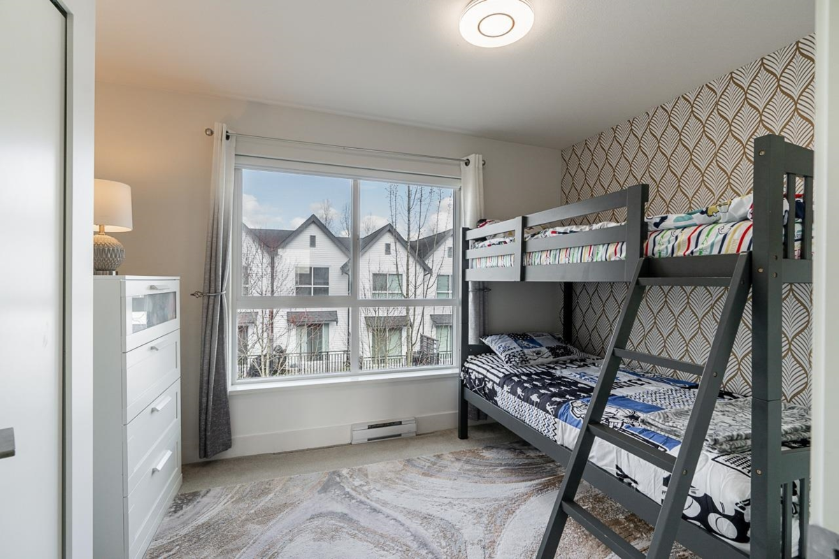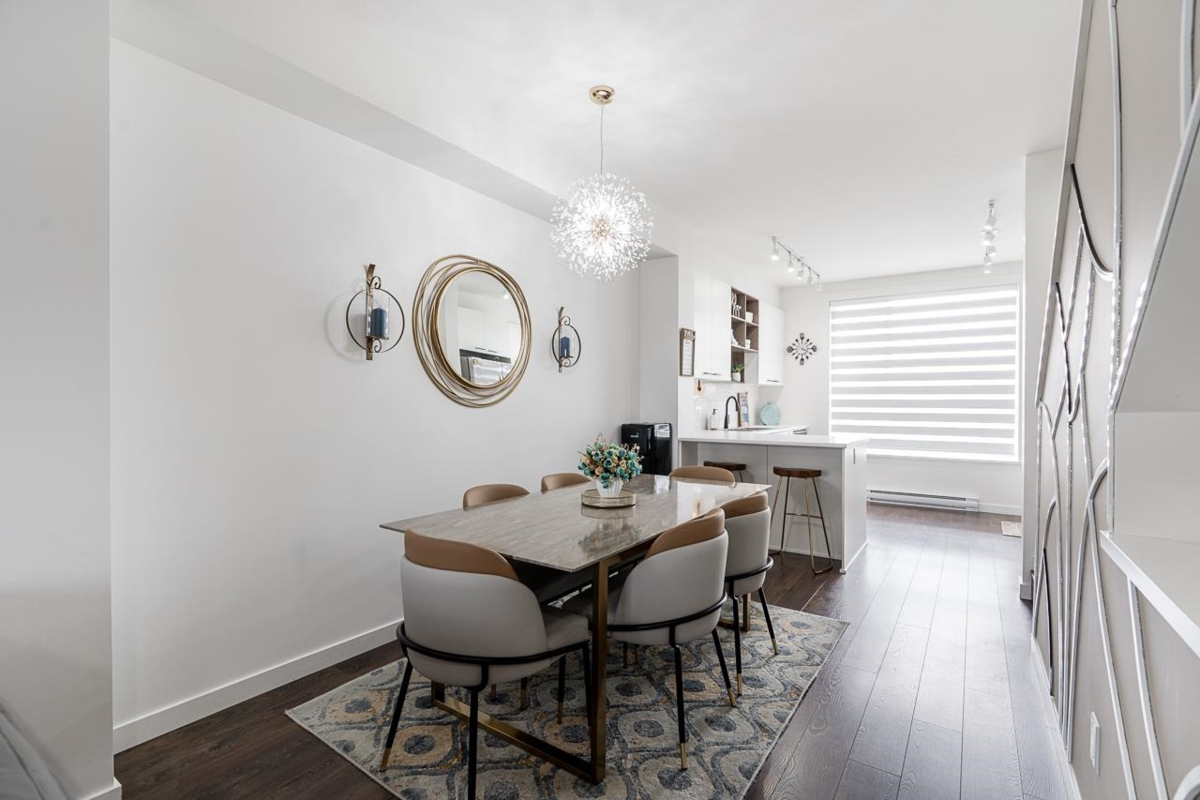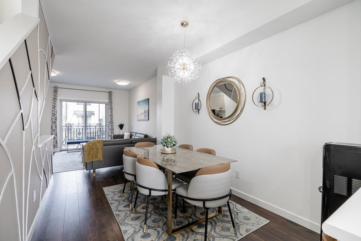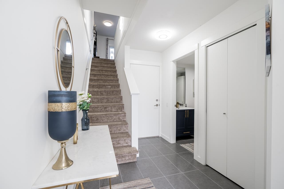 Welcome to CLAYTON MARKET! This stylish 2-bedroom + den, 3-bath home blends modern design with unbeatable convenience. The main floor features open-concept living, in-suite laundry, a powder room, and a versatile den that can serve as a 3rd bedroom or home office. Enjoy a sleek floating staircase, a designer kitchen with stainless steel appliances, pantry, and a spacious primary suite with three closets. Outdoor living shines with a private deck and fenced yard. Steps to schools, parks, Tim Hortons, shops, banks, transit, and the future SkyTrain station. Recent upgrades include zebra blinds, fresh paint, LED lighting, new carpet, laminate flooring, electric fireplace feature wall, and a new Samsung fridge. Immaculate condition, bright, and move-in ready—this one truly stands out!