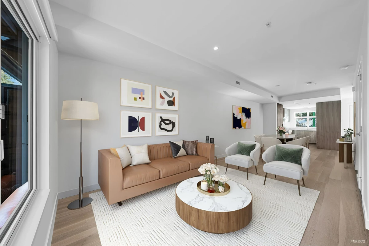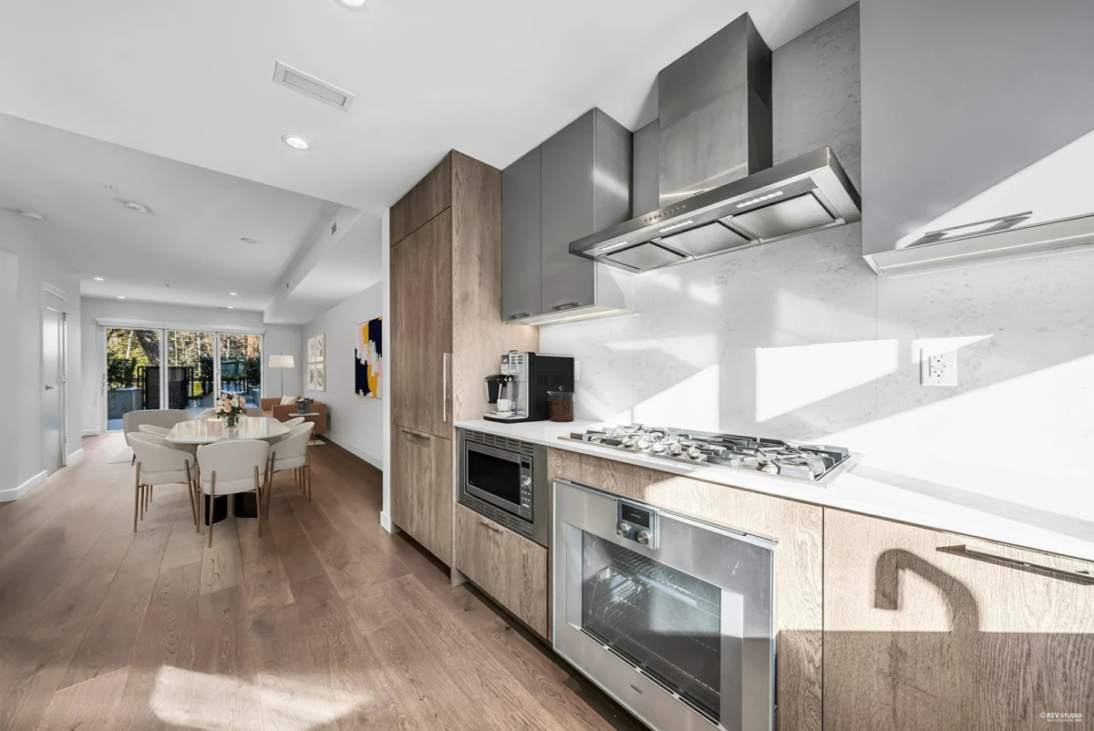 Welcome to Unit 4 at Holland Row—a rare opportunity to own a riverfront townhome in this exclusive 23-home community. This 4-bedroom residence offers the feel of a single-family home, featuring a spacious primary suite with double closets, stunning Capilano River views, and a spa-inspired ensuite with heated floors, a seamless glass shower, and double vanity. The high-end kitchen is equipped with integrated Gaggenau appliances, setting the tone for luxury. Accordion-style doors open to a private patio, seamlessly blending indoor and outdoor living. With both street-level and private garage entry, plus easy access to trails, cafes, transit, and shopping, this is North Vancouver living at its finest.