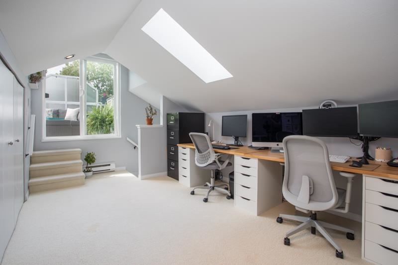 OPEN HOUSE SUNDAY NOV 30TH 2-4PM: BIG, Bright & SPACIOUS 1786 sq. ft. designed for flexibility and comfortable family living. Beautifully renovated. Easy walk to Elementary & Secondary Schools, Child Care and Thompson Community Centre. Quick Commute to Vancouver and convenient bus route nearby. 3 Spacious bedrooms PLUS den, or leave the 3rd bedroom as a Media room. Tons of storage PLUS a spacious laundry room! 2 decks, with one being a private roof top sun deck for gorgeous summer days. 2 Parking, pets permitted. Truly unique and a TREAT to show.