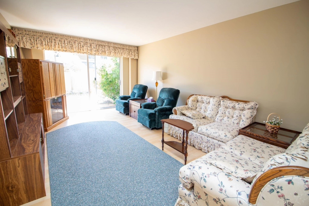 Very well maintained 2 bedroom rancher style townhome. It has a well laid out floor plan with skylights to help brighten up the space. The large living area, is perfect for a multi-use space, and opens out on to a spacious south facing patio. The galley kitchen has plenty of cupboard space and an adjoining eating/dining area, great for entertaining. The bedrooms are both an ample size, and there's also a storage room, and a large laundry closet off the main hallway. The location is unmatched, on a transit route and easy walking distance to shops and schools. NO AGE RESTRICTIONS!