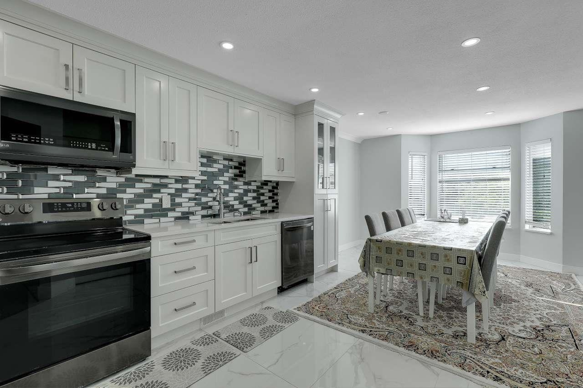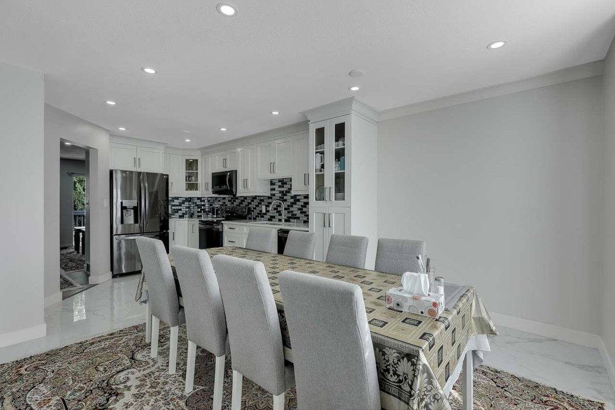 Location! This corner unit townhouse features a spacious layout with 4 bedrooms and 3 bathrooms, showcasing newer laminate flooring, new tile, kitchen cabinets, countertops, and appliances, all situated in the heart of the Fleetwood area. The main floor includes a large kitchen with an eating area, a combined living and dining room with a cozy gas fireplace, and sliding doors leading to a large deck. Enjoy a private patio and yard off the fourth bedroom.The lower level offers a fourth bedroom, an office, and another bathroom. An attached single garage This prime location is within walking distance to shopping, restaurants, and Berkshire Park Elementary, with transit just steps away. Additionally, the property is zoned for future development project and is close to the new SkyTrain.