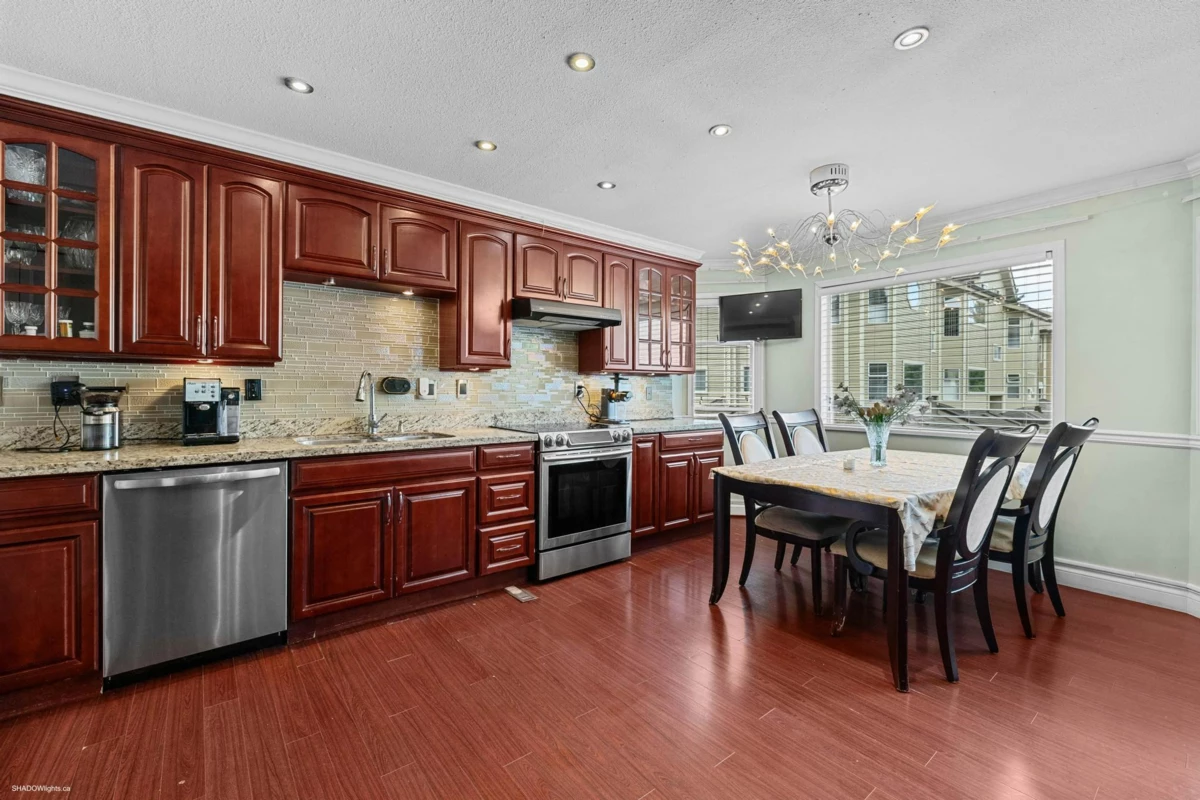 Welcome to Edenbridge, a sought-after, family-friendly community in Richmond’s prestigious Riverdale. 1708 SF bright & spacious corner home across 3 levels, 3 BR+2.5 baths+a huge flex room (perfect as a 4th BR/gym/office/guest suite) & a HUGE DOUBLE side-by-side garage. The heart of the home is the 2015 kitchen w/ granite countertops+cherrywood cabinets+ glass tile backsplash, flowing to an inviting dining area w/ balcony for summer BBQs. Upstairs, retreat to generous BRs, including a serene primary suite w/ updated ensuite. Thoughtful updates include laminate flooring/crown moulding/newer SS appliances & 2022 hot water tank--adding to peace of minds. Steps to Blair Elementary, Burnett Secondary, Thompson CC. This unit backs onto No2 Rd. Fully hedged & private.