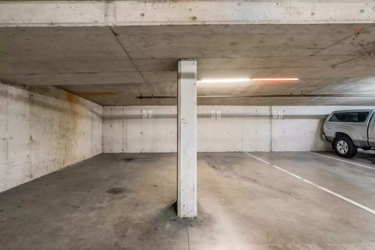 Penthouse Living! Top-floor corner unit with a massive 404 sq. ft. Balcony offering stunning city & mountain views. Bright, quiet, and centrally located a rare find! Beautifully planned layout with living room & gas fireplace, spacious kitchen, and open dining area. Large primary bedroom with deck access and ample closets; second bedroom with two corner windows. Laundry room with side-by-side washer/dryer & storage. Hot water & gas included in maintenance. Two premium side-by-side parking stalls and storage locker. Prime location with all essential amenities, schools, and transit just steps away. Open house Nov 30 - Sun 1:00-3:00pm